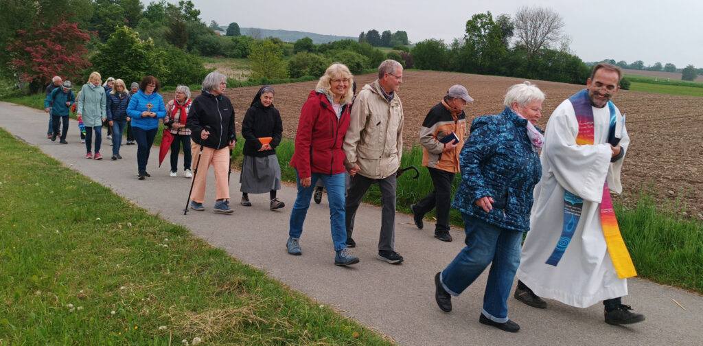 Reute-Gaisbeuren – Die Bittwoche findet bei der Kirchengemeinde St. Peter und Paul Reute immer noch guten Zuspruch. So konnte am Dienstag (7.5.) in der Leonhardskirche in Gaisbeuren Pater Hubert Vogel mit ein paar Dutzend Gläubigen einen festlichen Gottesdienst feiern. Hermann Hecht ließ dabei die Orgel besonders feierlich erklingen. Anschließend ging der Bittgang bei angenehmer Temperatur in Richtung Dinnenried. Am Kirrlohwald war Halbzeit, von hier aus gingen die Pilger im Gebet wieder zurück zur Kirche. Mit dem Wettersegen endete der Bittgang.