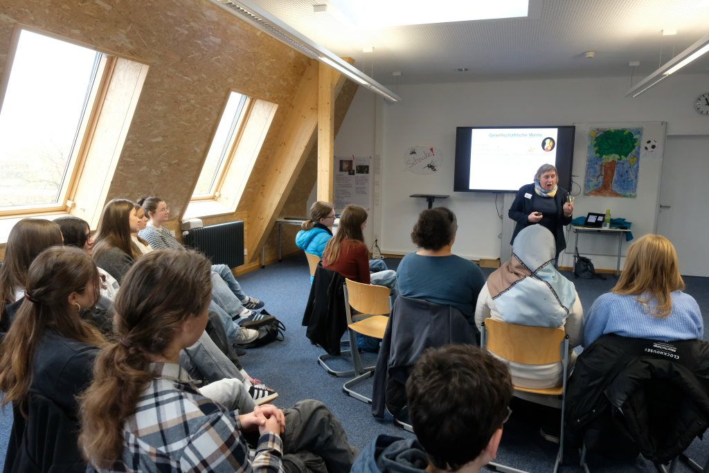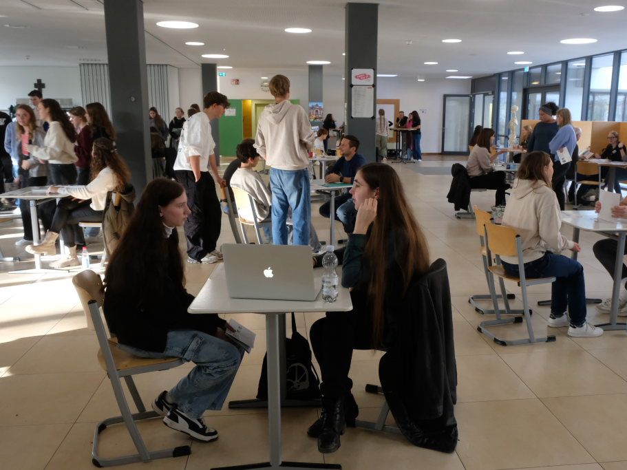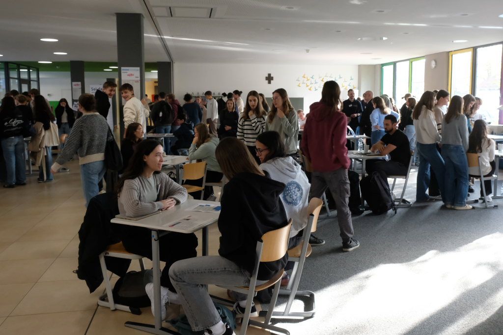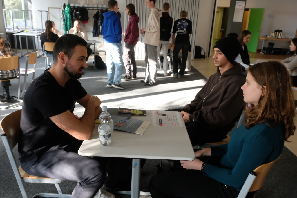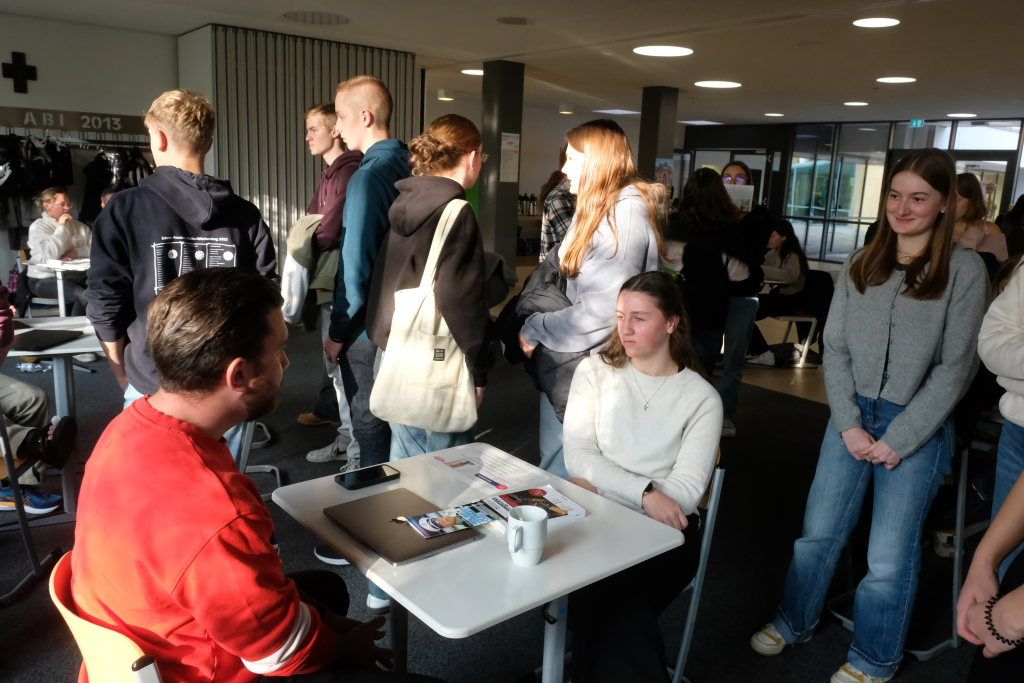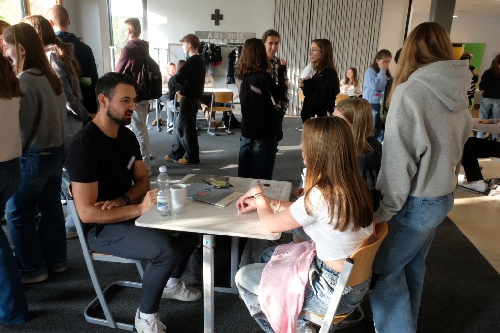 Unter der Federführung von Oberstufenkoordinator Josef Heine und der Vorstandsriege des Ehemaligenvereines fanden am Vormittag in vier Workshops-Slots und fünf Workshops „Bewerbungsprozess, Bewerbungsunterlagencheck, Interview, Knigge und „Wie setze ich mein Stärken in Szene“ mit Ausbildungsleitern renommierter Firmen und Institutionen aus der Region statt. 14 Referenten und Personalvertreter von Firmen wie Lissmac, Verallia, Elo-Bau, Hymer, Versandhaus-Walz, Liebherr, des Landkreises Ravensburg, der Agentur für Arbeit oder der Stadt Bad Wurzach zeigten den etwa 130 Schülern der Klassen 10 und 11 im 2. OG der Schule, was zu einer guten und erfolgreichen Bewerbung dazugehört.