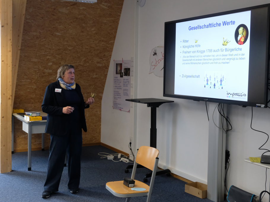Mit dabei war auch Petra Schnierle von impressio Ravensburg, die in ihrem Doppel-Workshop vor allem über das richtige Auftreten beim Bewerbungsgespräch referierte. Die Dozenten gaben den Schülern wichtige Tips für das Erstellen des Lebenslaufes, aber auch für das richtige Verhalten im Gespräch mit den Personalern der jeweiligen Firma. Nach einem gemeinsamen Mittagessen in der Mensa ging es für die Schüler ins Foyer des Schulgebäudes mit der Studienberatung mit vielen ehemaligen Kollegschülern.