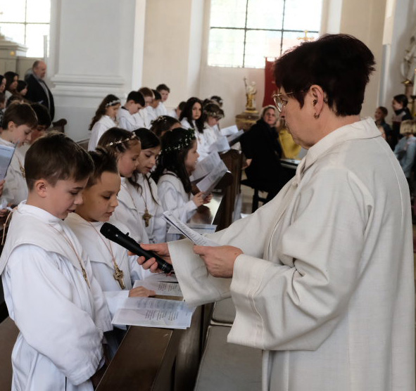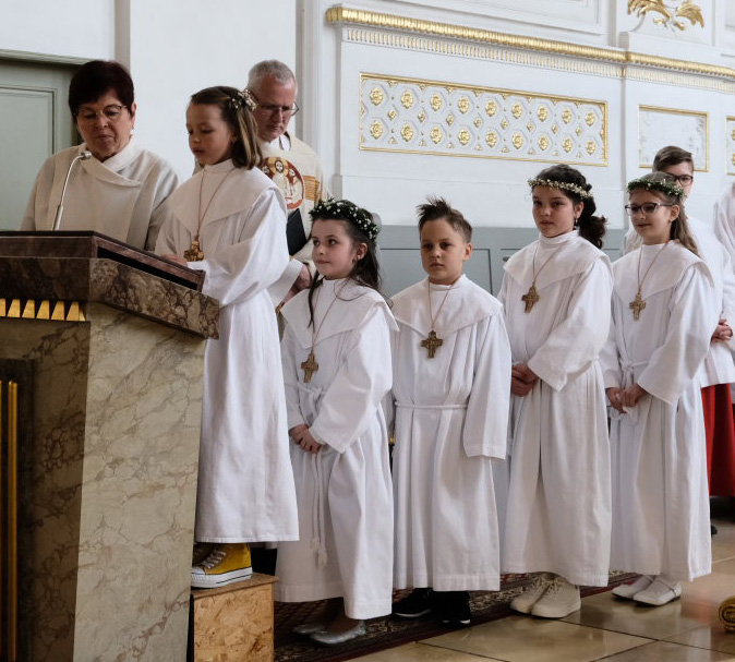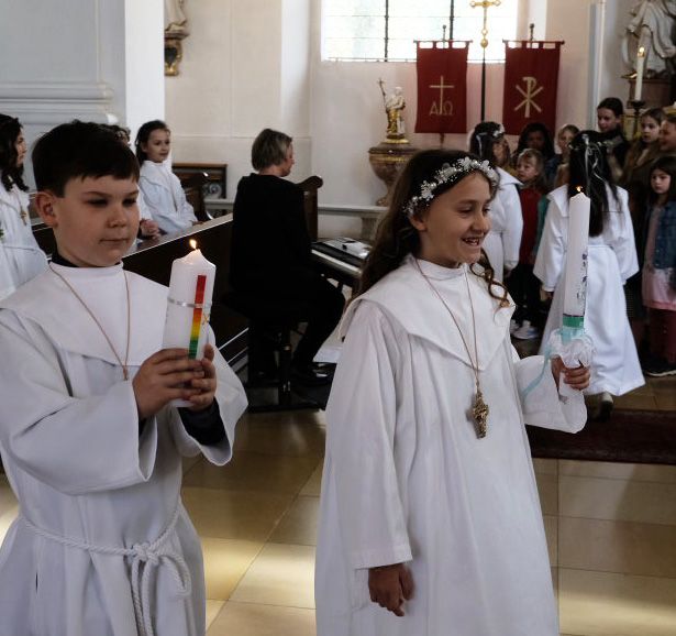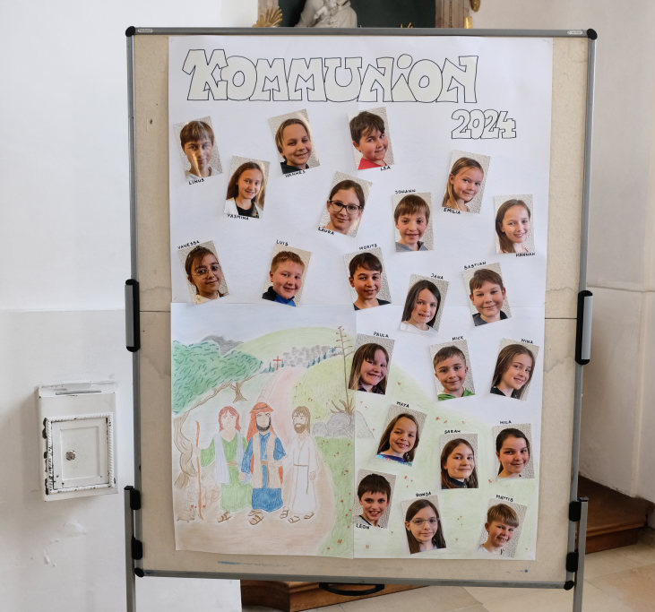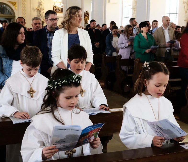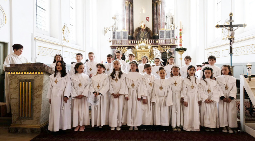 Die diesjährigen Erstkommunionkinder sind: Hannes Amann, Sarah Binder, Mick Birkholz, Luis D’Elia, Hannah Dürr, Johann Ehrmann, Emilia Erk, Jana Feurle, Jasmina Haluskova, Paula Hartmann, Nina König, Lea Markgraf, Linus Miller, Maya Münsch, Bastian Musch, Leon Pätzold, Mattis Rottmann, Vanessa Slimak, Laura Sonntag, Mila Steiner, Moritz Thiel und Ronja Wagner.