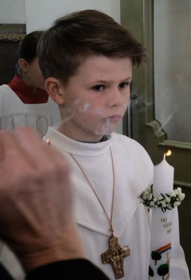Pfarrer Maier erklärte vor dem Glaubensbekenntnis, beim ersten Sakrament, ihrer Taufe, seien die Kinder noch zu klein gewesen, damals hätten ihre Eltern und Paten für sie gesprochen. Mit der Erneuerung des Taufversprechens schufen die Kinder nun die Voraussetzung, um zum ersten Mal an den Tisch des Herrn zu treten.