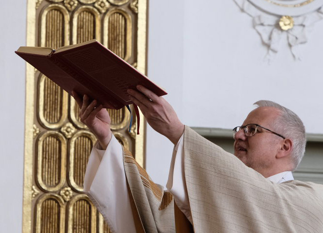 Mit dem Evangeliumswort von den beiden Emmaus-Jüngern stimmte Pfarrer Stefan Maier die Kinder und die Gemeinde auf das große Opfer und die Auferstehung Jesus ein. Die Emmaus-Jünger erkannten erst, als er das Brot brach, wer da mit ihnen gegangen war und erst da drang die Kunde seiner Auferstehung zu ihnen durch. „Brannte uns nicht das Herz“ stellten sie in der Rückschau fest. Erst da gingen ihnen die Augen des Herzens auf. „Die wichtigsten Dinge sieht man mit den inneren Augen, den Augen des Herzens“, stellte der Pfarrer fest. Daher lud er die Kinder ein, jeden Sonntag bei der Messe Gott und Jesus bei der Gabenbereitung mit den inneren Augen zu erkennen.