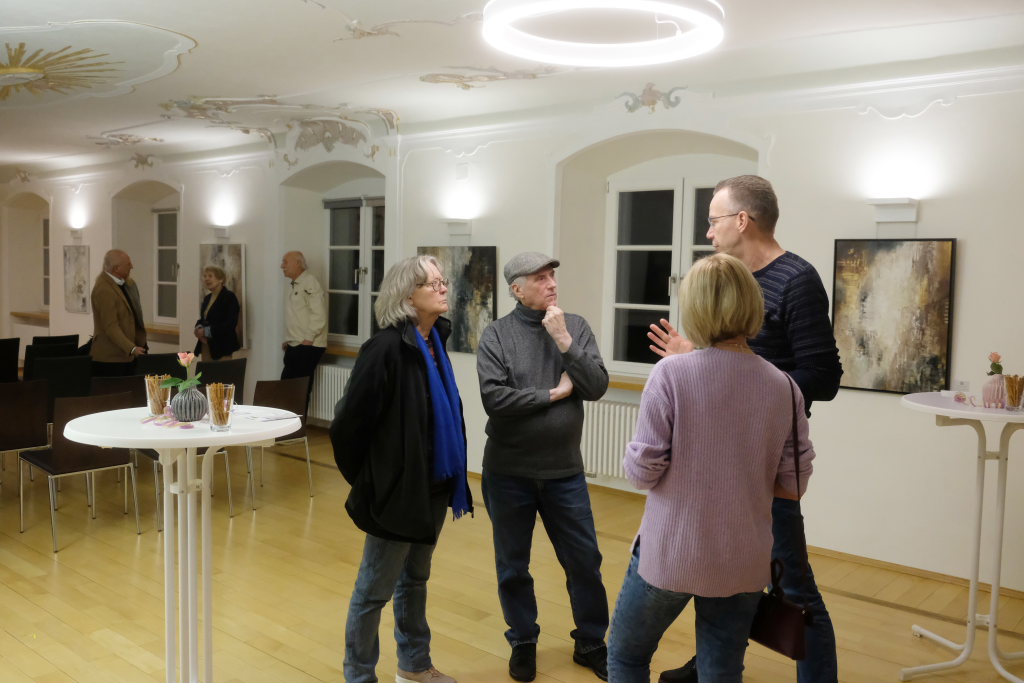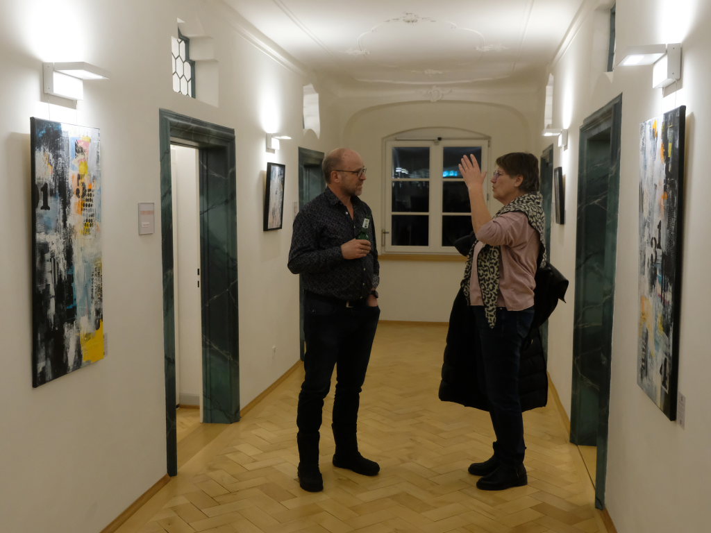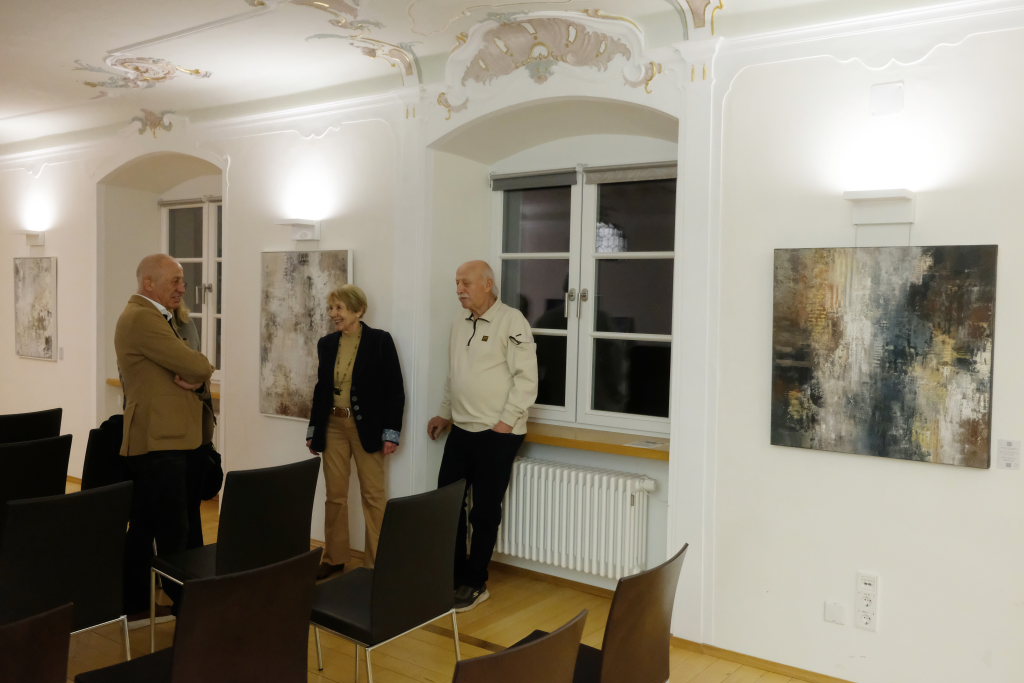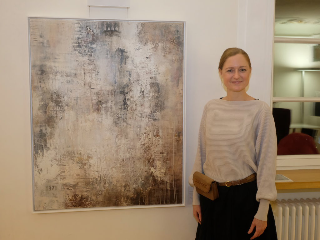 Die Künstlerin, deren Werke von Kunstliebhabern in Europa, Kanada und den USA gesammelt werden, freut sich sehr darüber, in Bad Wurzach ausstellen zu dürfen. Sie hat die Ausstellung in verschiedene Segmente aufgeteilt. Im Kapitelsaal hängen die „Wallstories“, für die sie sich bei ihren Spaziergängen entlang der alten Mauern und den darin versteckten Geschichte(n) in Memmingen inspirieren ließ.
