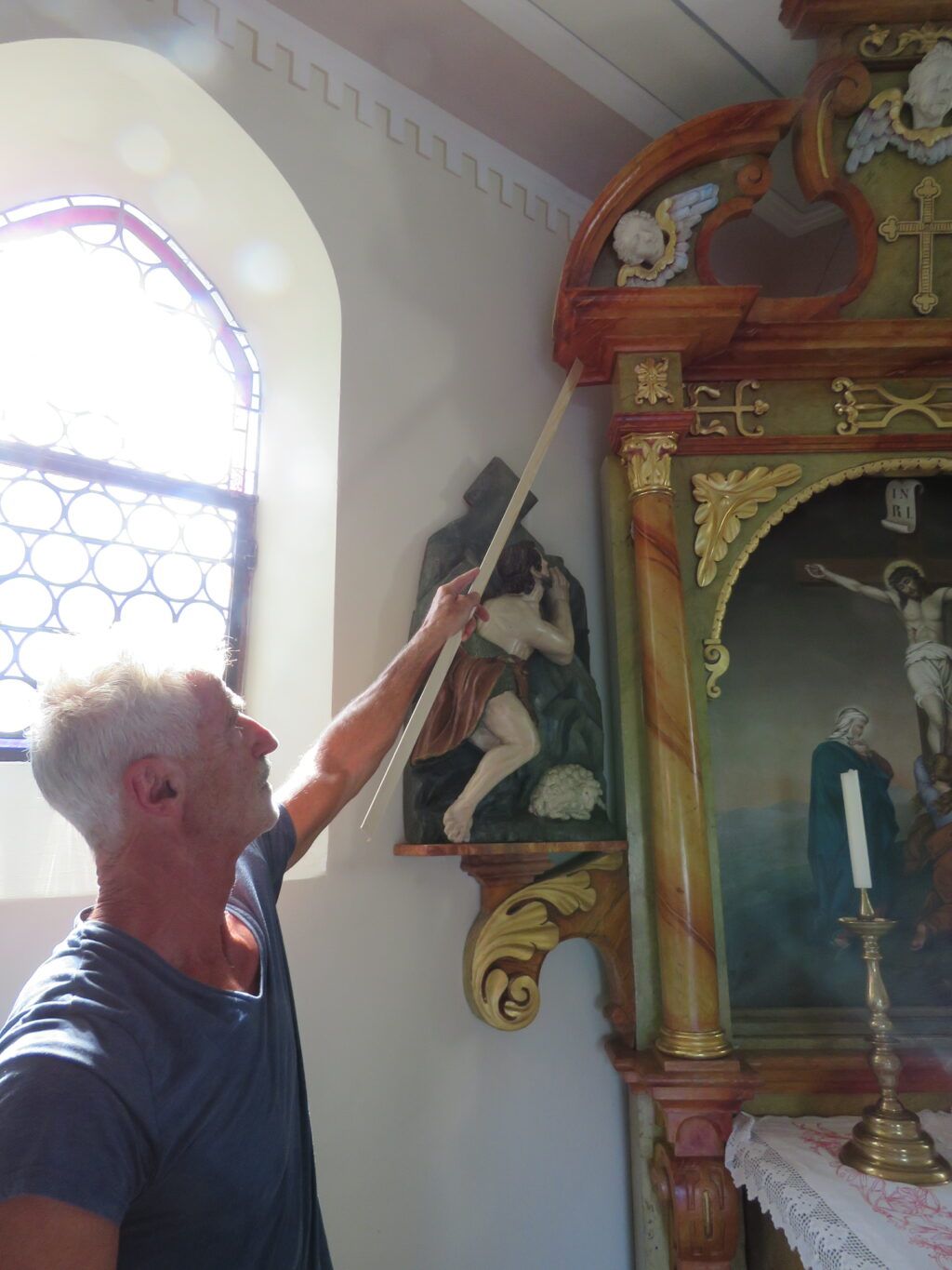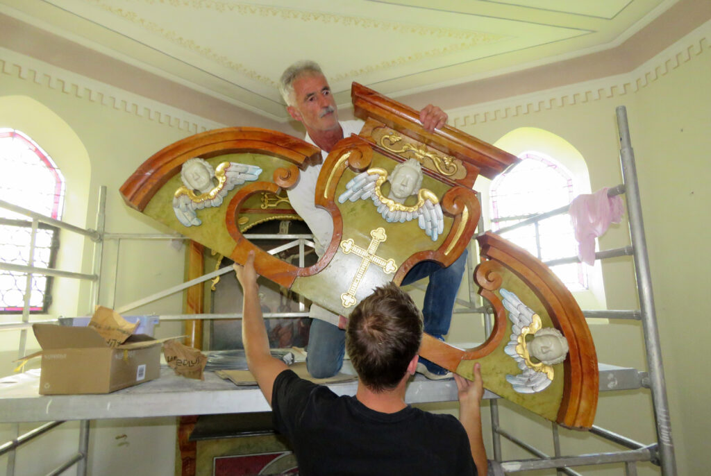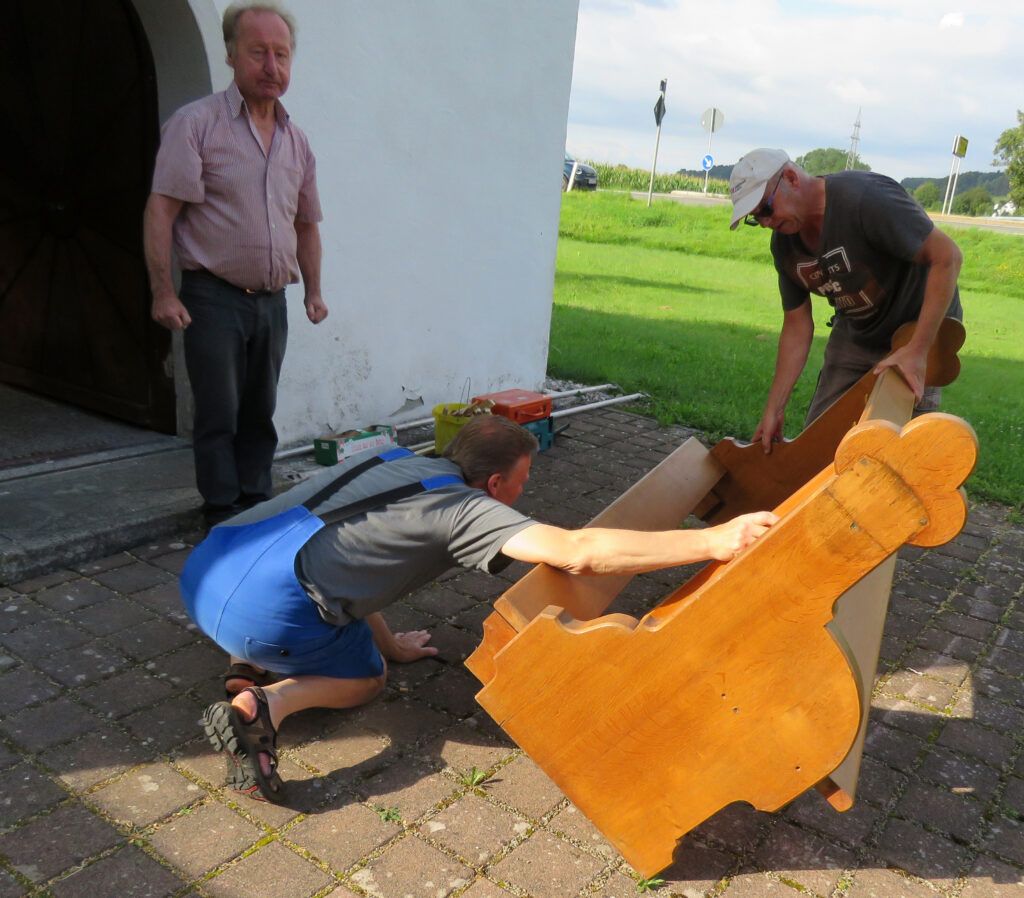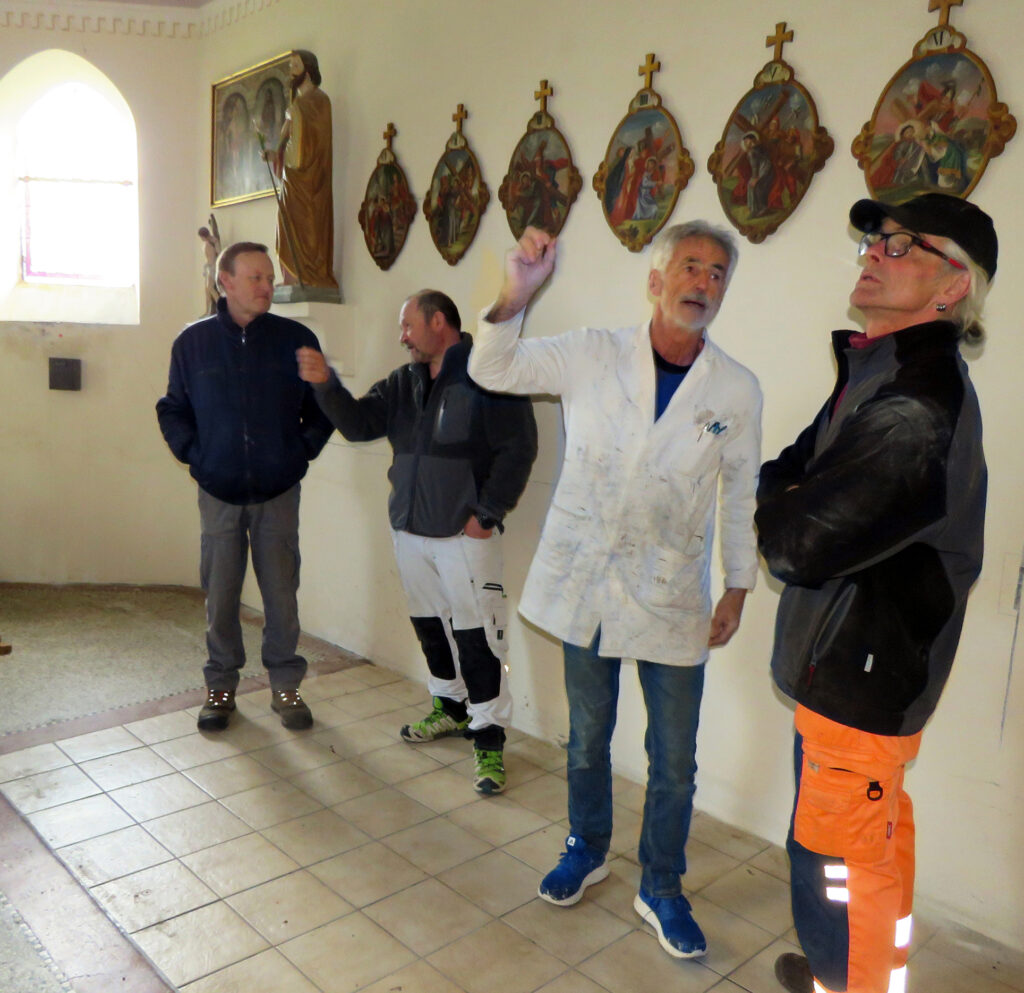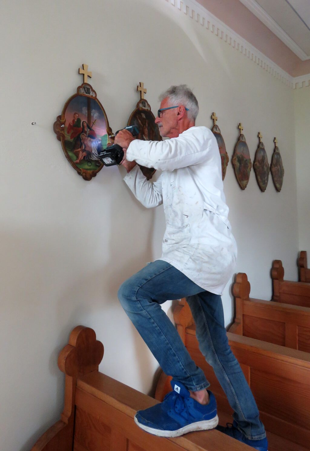 Brugg / Arnach (dbsz) – Gerhard Reischmann hat nahezu alle Arbeitsschritte bei der Kapellen-Innenrenvation in Brugg mit der Kamera eingefangen. Am vergangenen Sonntag (18.8.) hat er 85 Bilder gezeigt, die den doch mühevollen und angesichts des Zieldatums auch spannenden Weg zur gelungenen Renovation dokumentieren. In unserer Bilder-Galerie zeigen wir alle 85 Bilder – leider hat der Computer die Reihenfolge durcheinandergebracht. Dennoch geben die 85 Bilder einen guten Eindruck von der vielen – zum großen Teil ehrenamtlichen – Arbeit. Schauen Sie in die Bilder-Galerie: