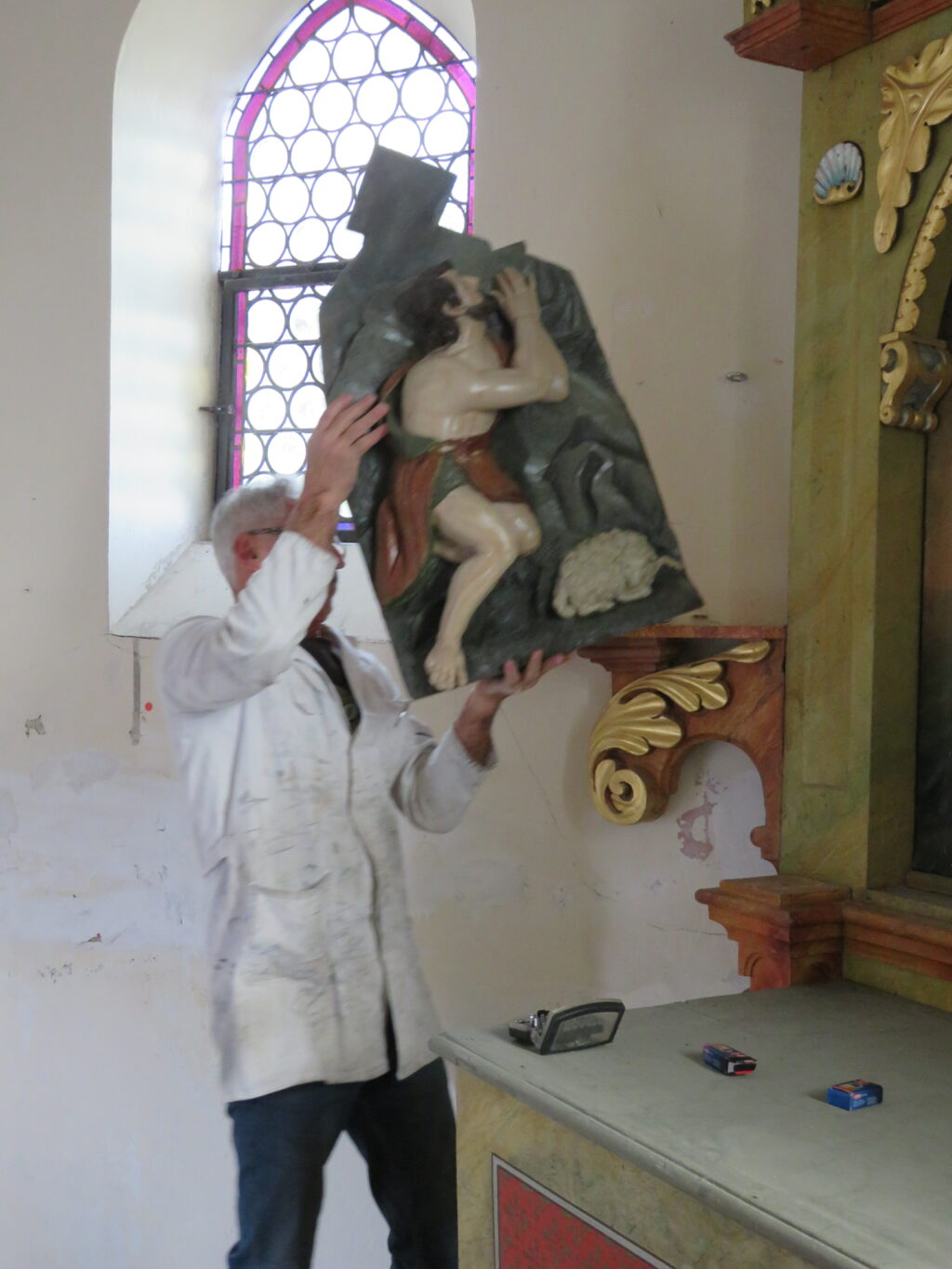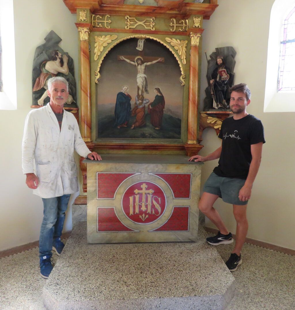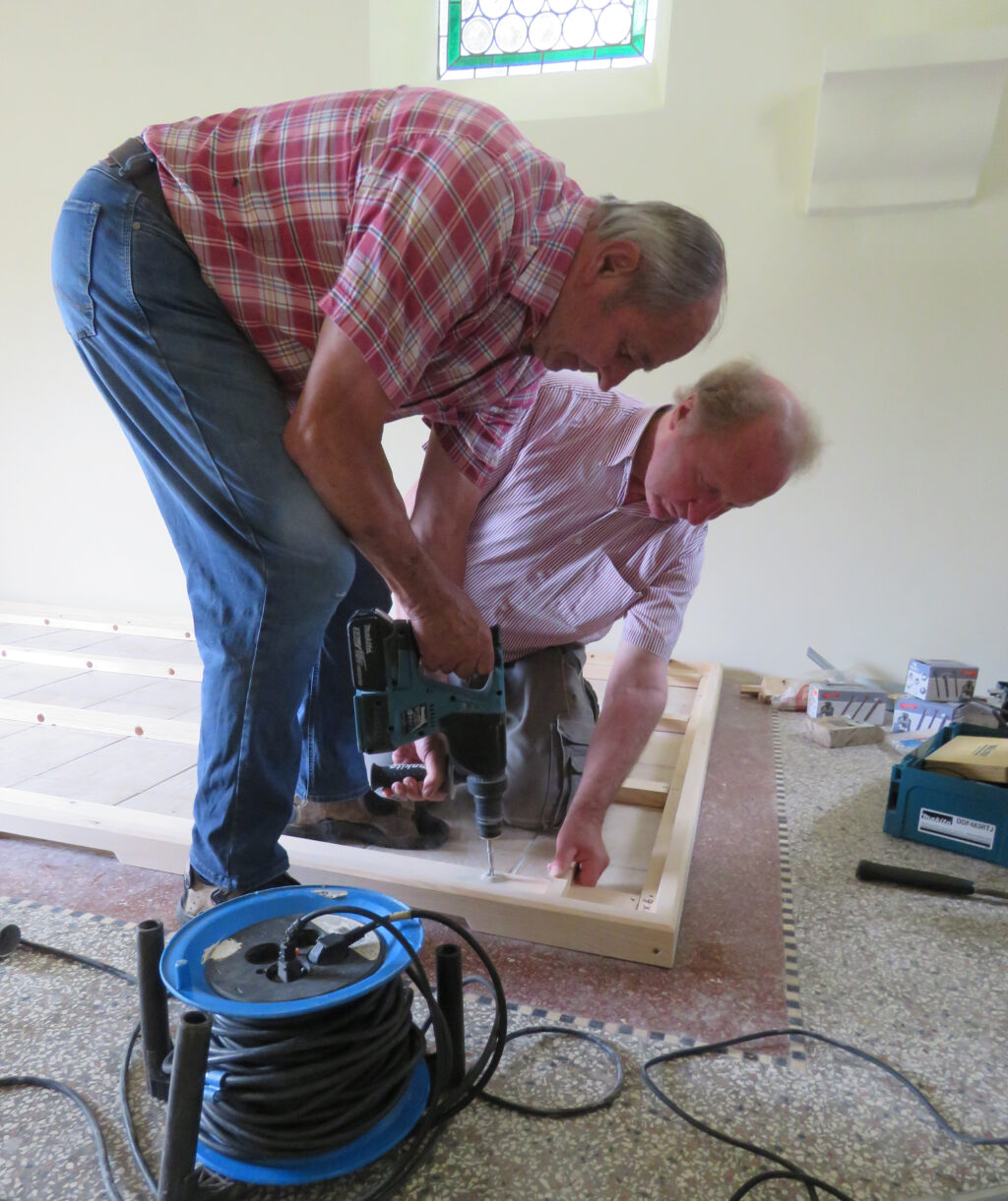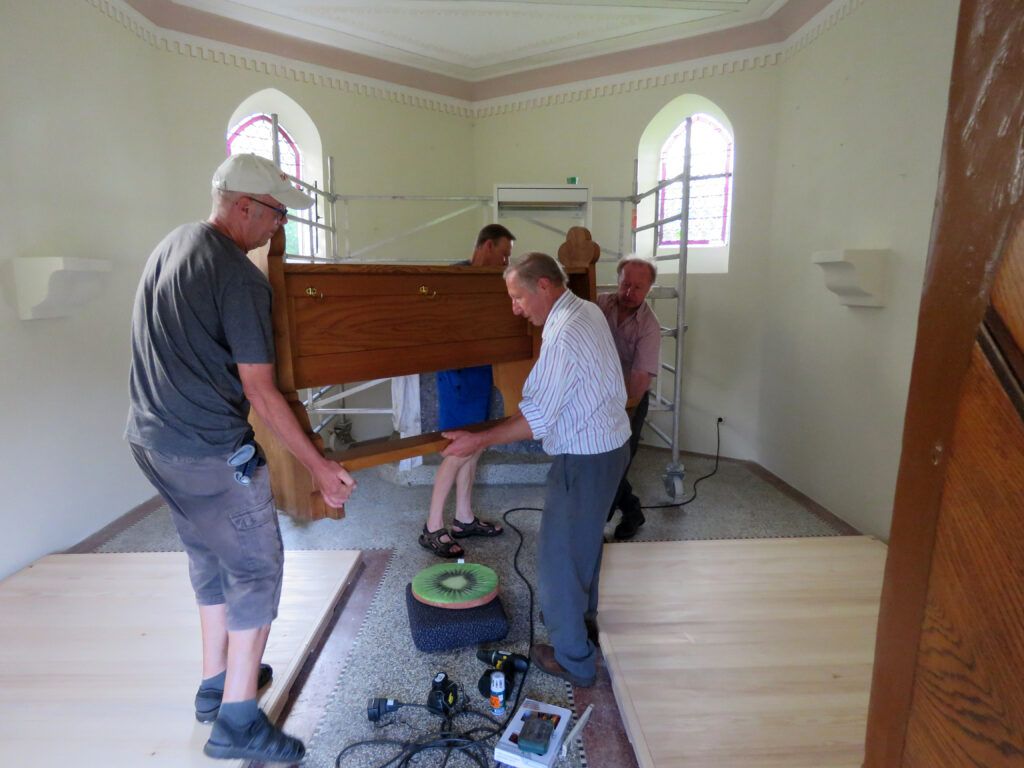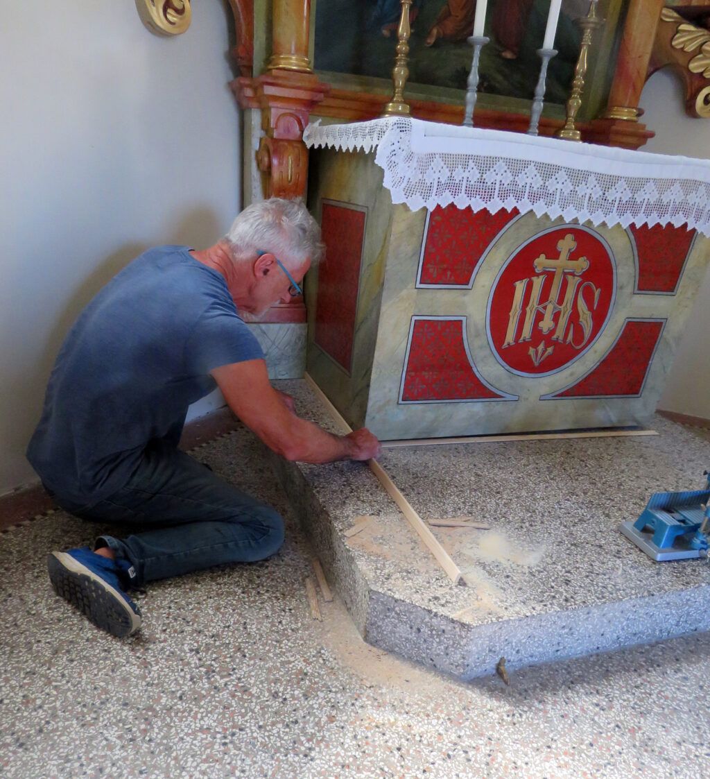 Brugg / Arnach (dbsz) – Gerhard Reischmann hat nahezu alle Arbeitsschritte bei der Kapellen-Innenrenvation in Brugg mit der Kamera eingefangen. Am vergangenen Sonntag (18.8.) hat er 85 Bilder gezeigt, die den doch mühevollen und angesichts des Zieldatums auch spannenden Weg zur gelungenen Renovation dokumentieren. In unserer Bilder-Galerie zeigen wir alle 85 Bilder – leider hat der Computer die Reihenfolge durcheinandergebracht. Dennoch geben die 85 Bilder einen guten Eindruck von der vielen – zum großen Teil ehrenamtlichen – Arbeit. Schauen Sie in die Bilder-Galerie: