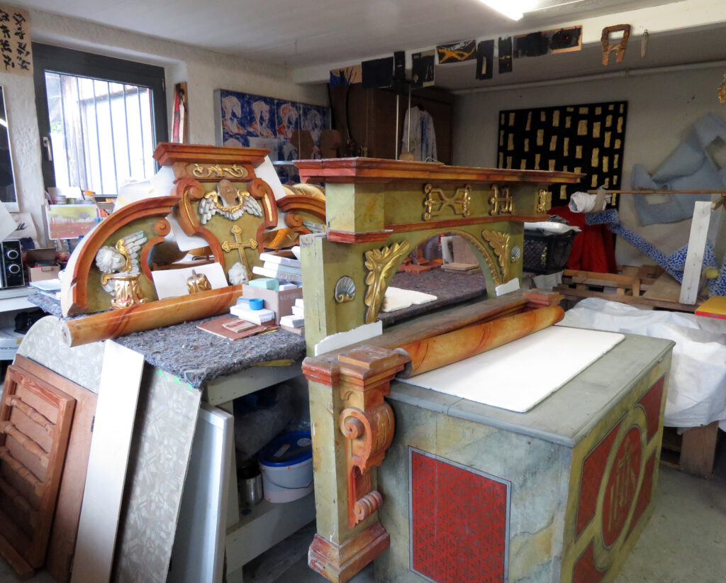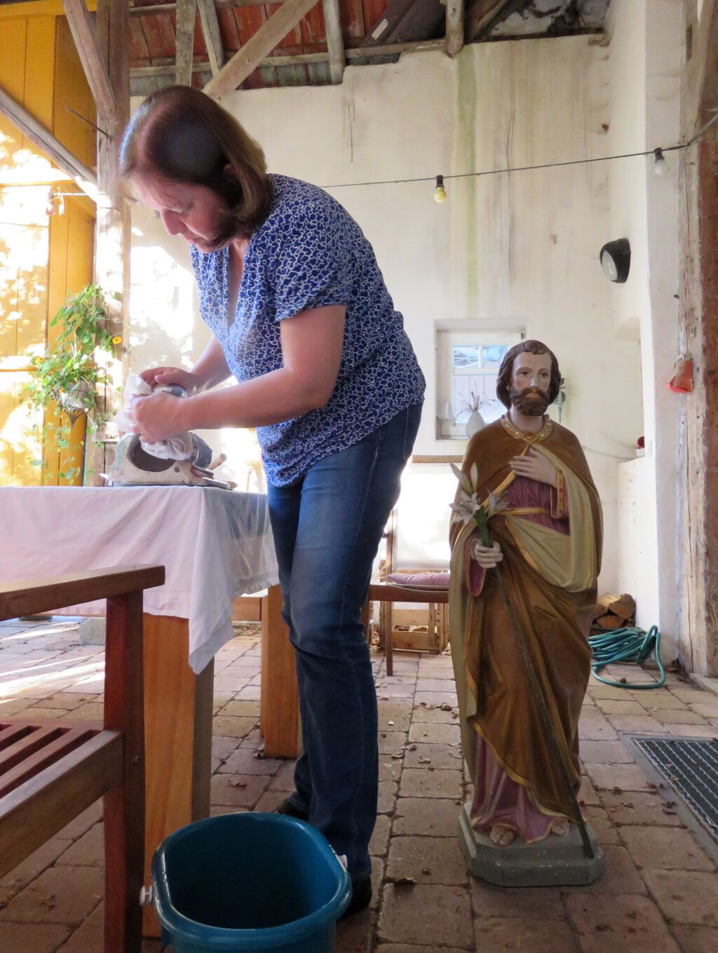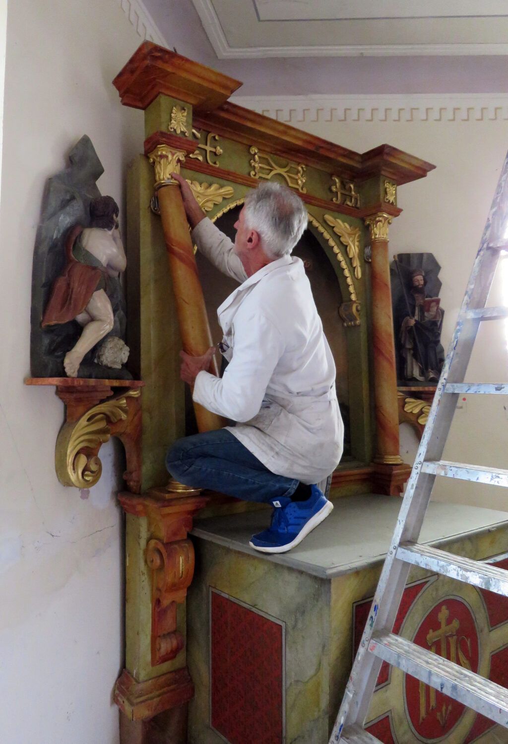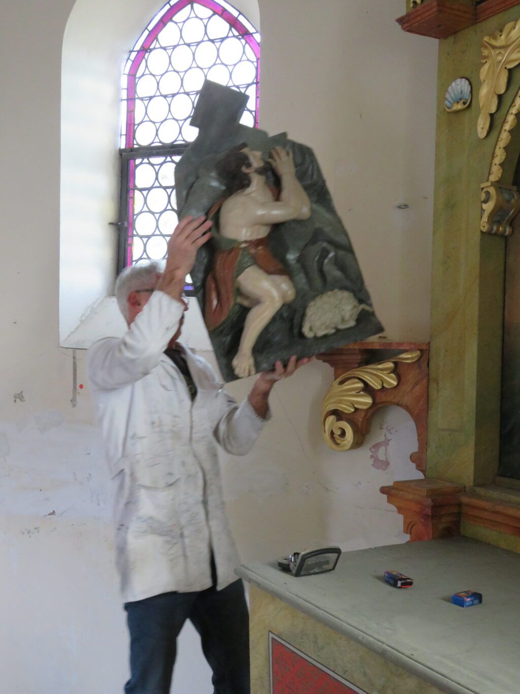 Brugg / Arnach (dbsz) – Gerhard Reischmann hat nahezu alle Arbeitsschritte bei der Kapellen-Innenrenvation in Brugg mit der Kamera eingefangen. Am vergangenen Sonntag (18.8.) hat er 85 Bilder gezeigt, die den doch mühevollen und angesichts des Zieldatums auch spannenden Weg zur gelungenen Renovation dokumentieren. In unserer Bilder-Galerie zeigen wir alle 85 Bilder – leider hat der Computer die Reihenfolge durcheinandergebracht. Dennoch geben die 85 Bilder einen guten Eindruck von der vielen – zum großen Teil ehrenamtlichen – Arbeit. Schauen Sie in die Bilder-Galerie: