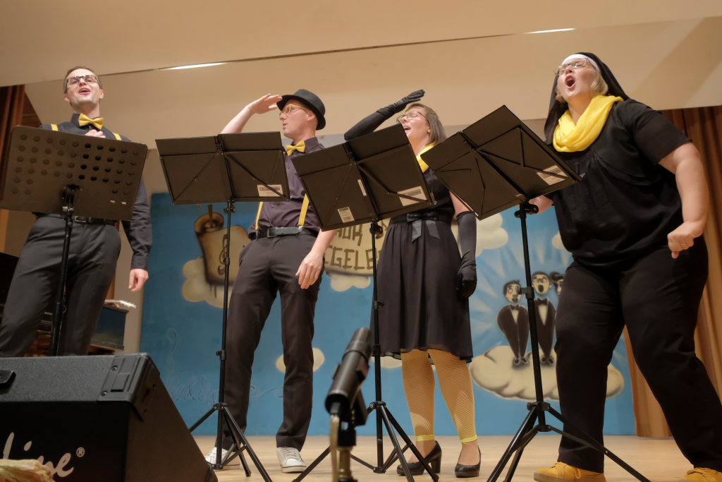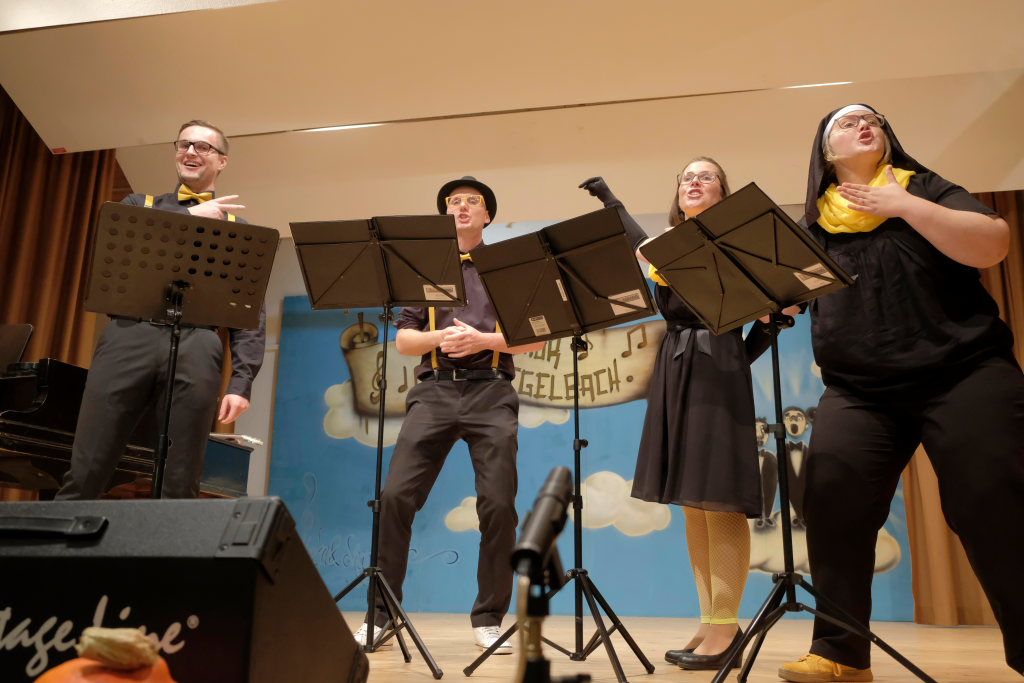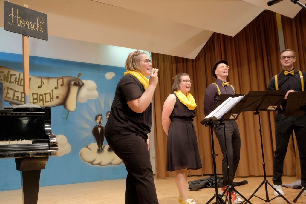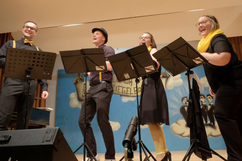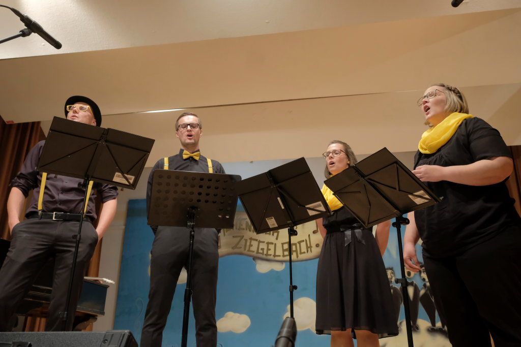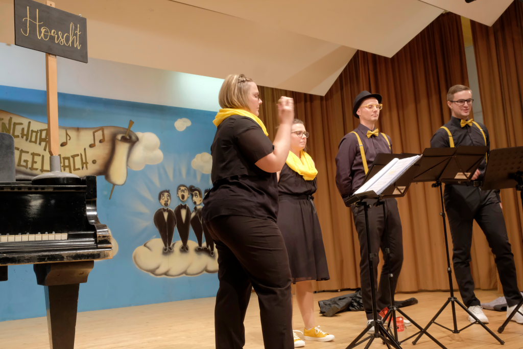 Den Vogel abgeschossen aber hat das Eigengewächs Vieragsang, das mit dem eher feierlichen „Laudate“ die Bühne enterte, um kurz darauf zu bekennen: „Mir wellet heit Spaß hon!“ Den brachten die vier Ziegelbacher Nachwuchs Sängerinnen und Sänger dann auch dem Publikum. Zunächst mit dem Queen-Hit „Don´t stop me now“ und erst recht mit dem englischen Liebeslieder Medley, dei dem sie das Wort Love durch das schwäbisch ganz ähnlich klingende „Horscht“ ersetzt hatten: Da wurde aus „Love is in the air“ Horschd is in the Air, und Horschd war dann auch für allerlei Liebeskummer bei „Horschd hurts“ verantwortlich.