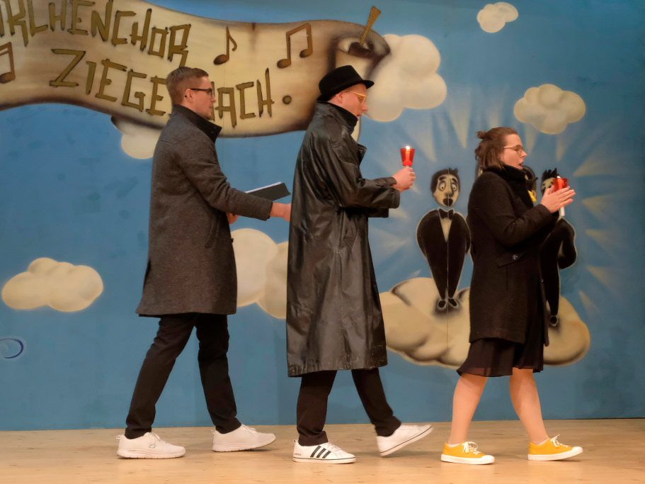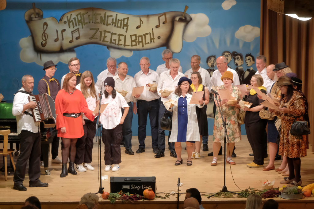 Den Auftakt machte traditionsgemäß der Kirchenchor Ziegelbach selbst, der mit seinem Auftakt-Lied „Have a nice day“ bereits die Richtung vorgab, wie sich der Abend entwickeln sollte. Bei ihrem zweiten Lied, einem Volks- und Kinderlieder-Medley nahmen die Sängerinnen und Sänger gesanglich den aktuell in Deutschland grassierenden gesellschaftlichen Gender- und Ethnien-Wahnsinn aufs Korn. Da wurde aus dem schwarzen Zigeuner „ein Angehöriger einer ethnischen Minderheit“, aus dem Häuptling der Indianer „ein amerikanischer Ureinwohner“.