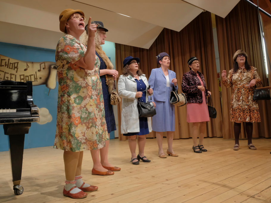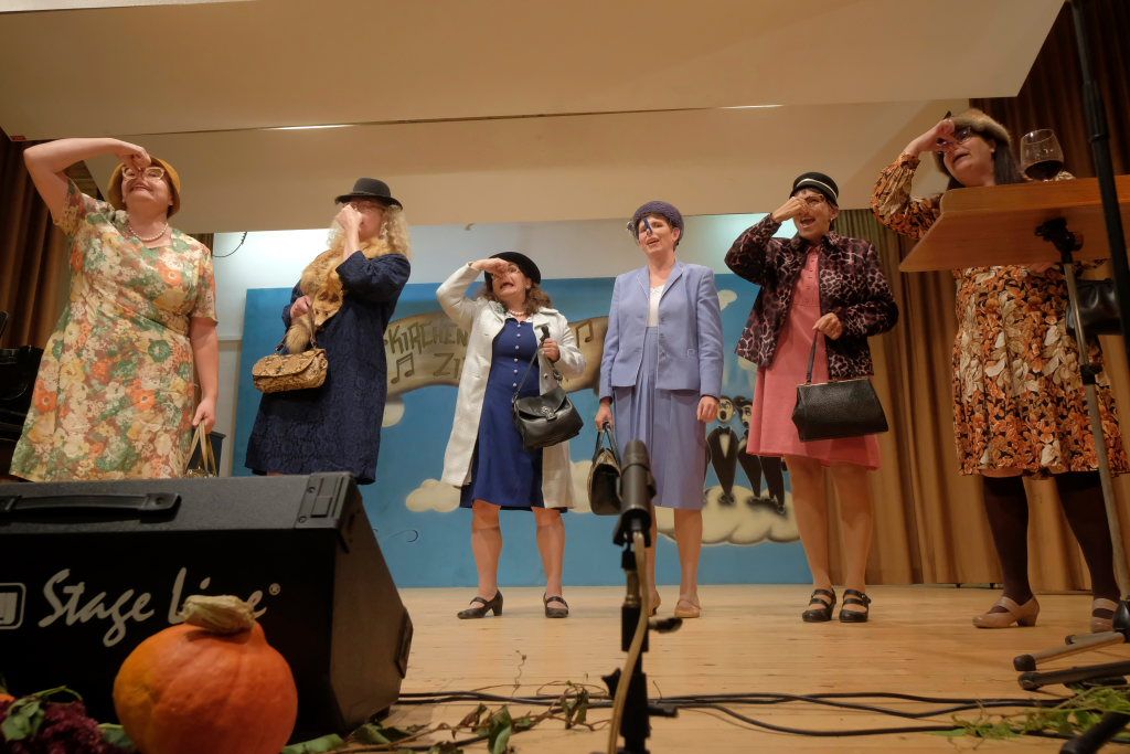 Als erste Zugabe gab es dann, auch weil die Damen auf der Bühne Durst bekamen, mit der „Sentimental Journey“ eine Hommage auf den Ziegelbacher A-Cappella Abend. Und weil es so schön war gab es für das begeisterte Publikum noch eine zweite, wo es auf das Eurovisionsgewinnerlied „Ein bisschen Frieden“ das Lied vom Männerschnupfen gab.