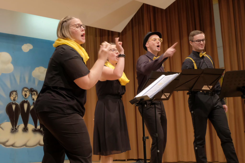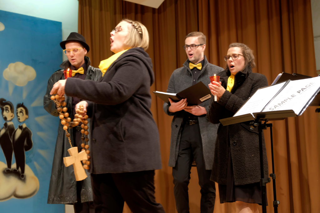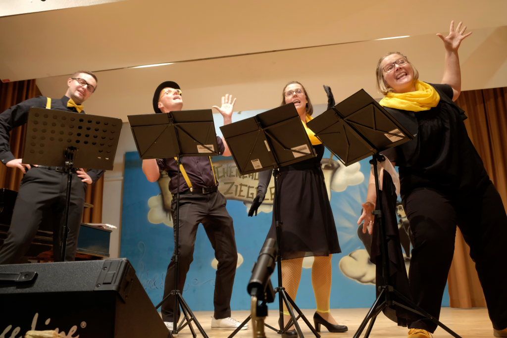 Stefanie und Franziska Scherb, Antony Hierlemann und Johannes Sonntag alias der VieraGsang begeisterten auch bei ihrem zweiten Auftritt mit perfektem Timing und wunderschönen Stimmen. Und hatten sogar eine Premiere im Gepäck: Nach einem wunderbar besinnlichen ersten Lied sorgten sie mit der Optimismus verbreitenden Eigenkomposition „Unser Tag“ für eine Weltpremiere an diesem Tag.