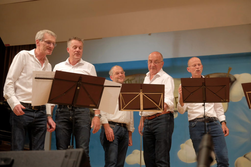 Dem eher klassischen Chorgesang widmeten sich die Singing Men Group aus Kisslegg, bei der mit dem Leiter des Bildungshauses Arnach ein „alter“ Bekannter in vorderster Reihe tätig ist. Nach dem gute Laune Medley mit „Surfin the USA“ und der wohl bekanntesten Eiscremwerbe-Melodie „Like ice in the sunshine“ sorgten eben dieser Andre Radke gemeinsam mit seinem Duett Partner Gebhart Müller bei dem Ruhigen  „Heaven“ für das entsprechende Gänsehautfeeling.