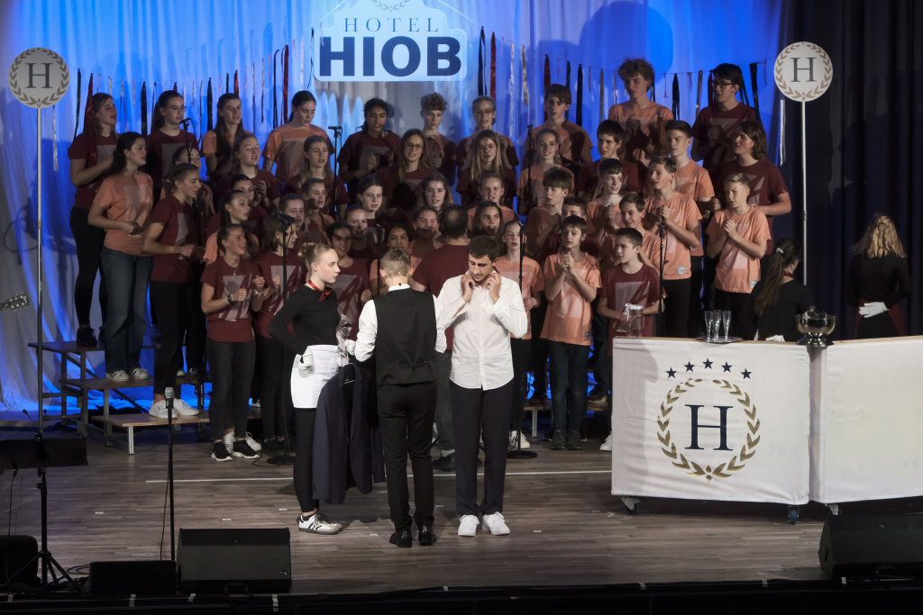 Jeweils 70 talentierte Teenager als SängerInnen und TänzerInnen sowie eine junge, peppige Live-Band stehen bei den Auftritten der einzelnen Camps auf der Bühne: In diesem Jahr führen beziehungsweise führten insgesamt 39 Projektchöre an 156 Orten deutschlandweit das Musical Hiob auf, eine moderne Umsetzung eines der brisantesten biblischen Themen überhaupt. Mit mitreißenden Songs, berührenden Theaterszenen und innovativen Show-Elementen überzeugten und begeisterten die jungen Darsteller das Publikum, darunter auch Bürgermeisterin Alexandra Scherer auch im Kursaal.