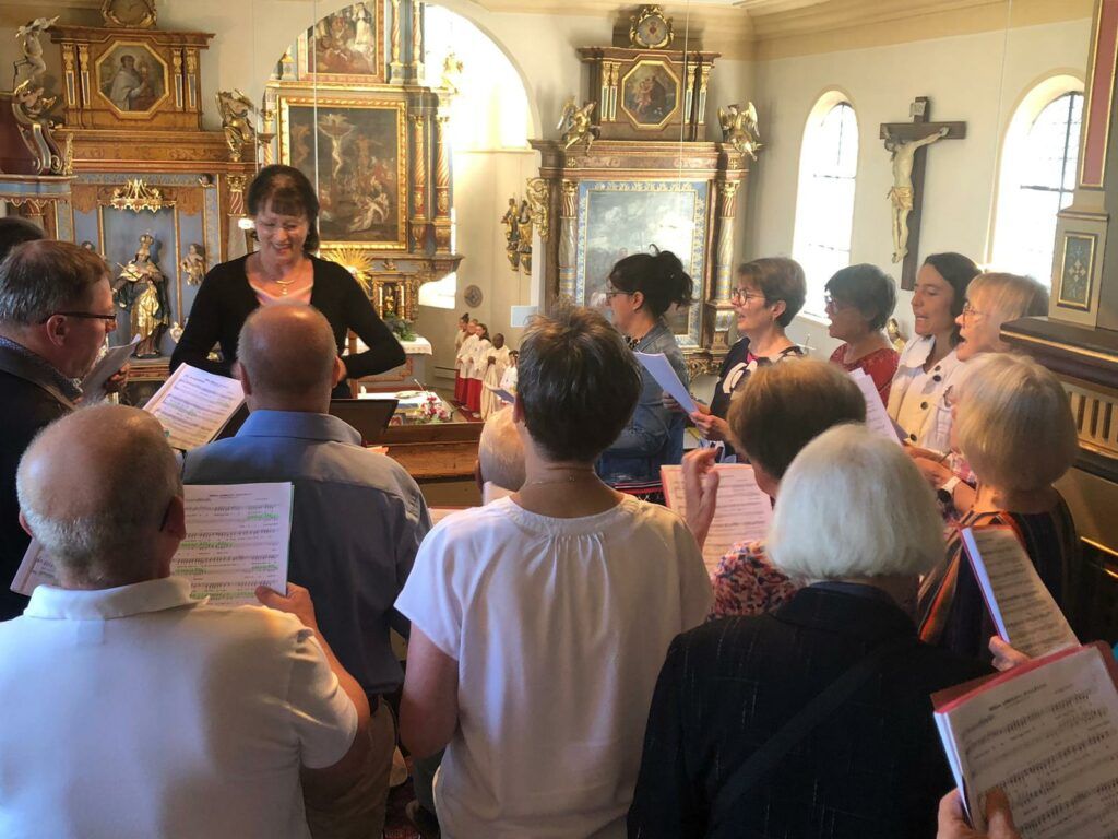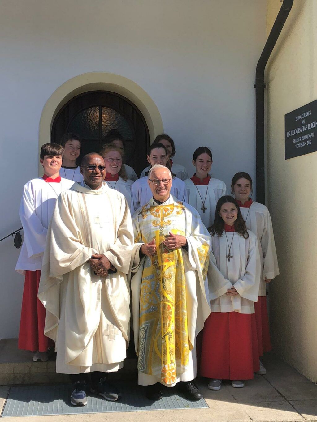 Der aus Enugu/Nigeria stammende Pfarrer Emmanuel Okwor, der für kurze Zeit in Deutschland weilt, zelebrierte zusammen mit Pater Josef den zur Tradition gewordenen Gedenkgottesdienst. Der Kirchenchor Haidgau hatte im Vorfeld zu einem Projektchor aufgerufen. Mit einigen talentierten neuen Projektsängerinnen und -sängern konnte der Chor die lateinische Messe „Missa Africana“ von Michael Schmoll einstudieren. Unter der Leitung von Vera Schodlok, dem Trommelsolisten Karl Dieing sowie Manuela Fluhr an der Orgel ertönte die afrikanisch-rhythmische Messe.