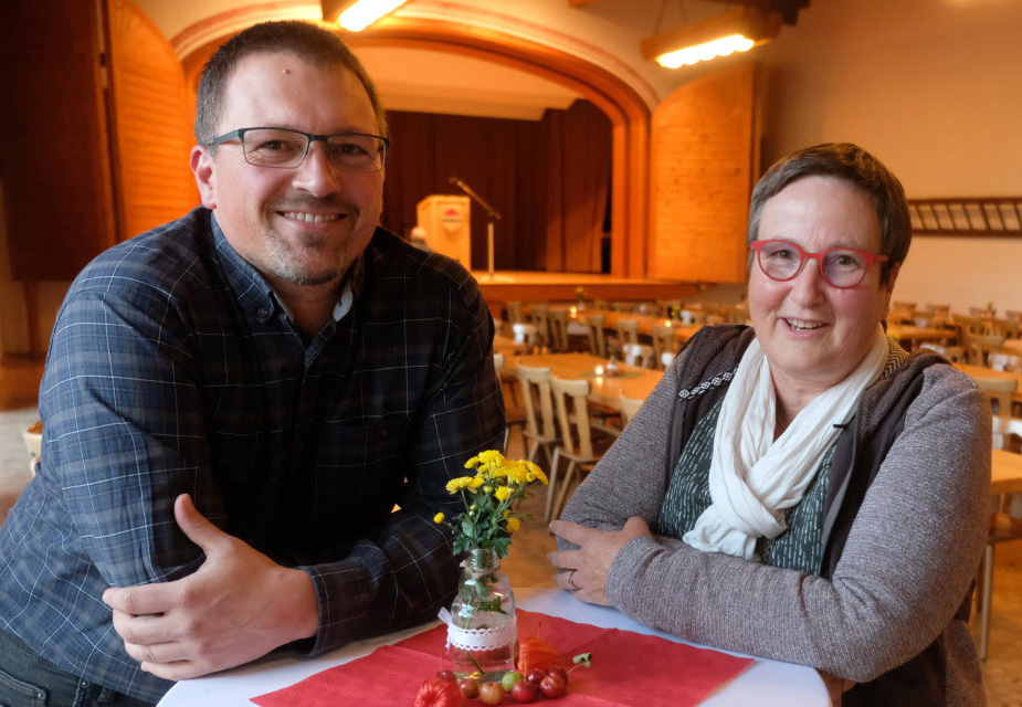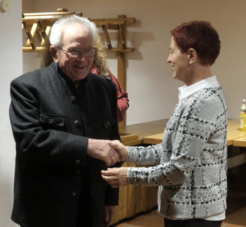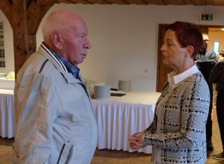 Ziegelbachs ehemaliger Feuerwehrkommandant Theo Klein im Gespräch mit Ortsvorsteherin Sybille Schleweck.