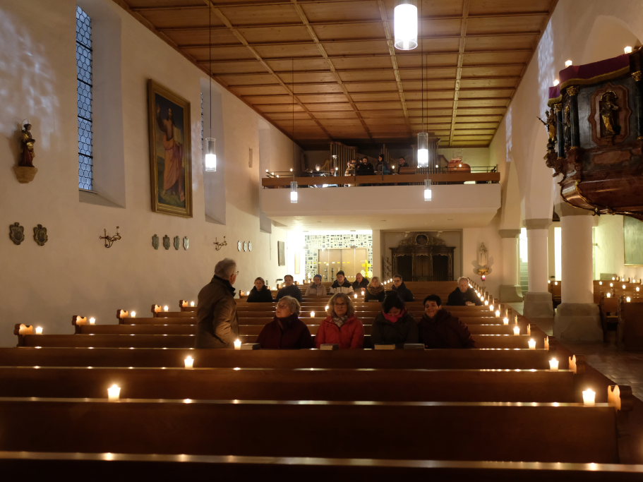 Berthold Leupolz bedankte sich danach bei allen aktiv Beteiligten, Pfarrer Gruzlak, den Ministranten, dem Jugendchor St. Verena mit seiner musikalischen Leiterin Bernadette Vogt, der Mesnerin und Elke Kreck, die viel Zeit und Energie in die Organisation investiert hatte. Aber auch bei den vielen Besuchern, die sich auf den Weg zu der wunderschön stimmungsvollen Veranstaltung gemacht hatten. Er vergaß auch nicht, auf die dritte Veranstaltung am kommenden Sonntag, den dritten Advent hinzuweisen: