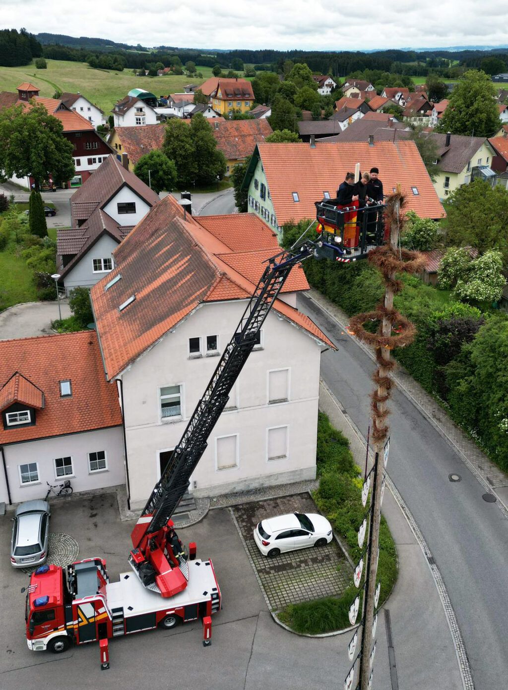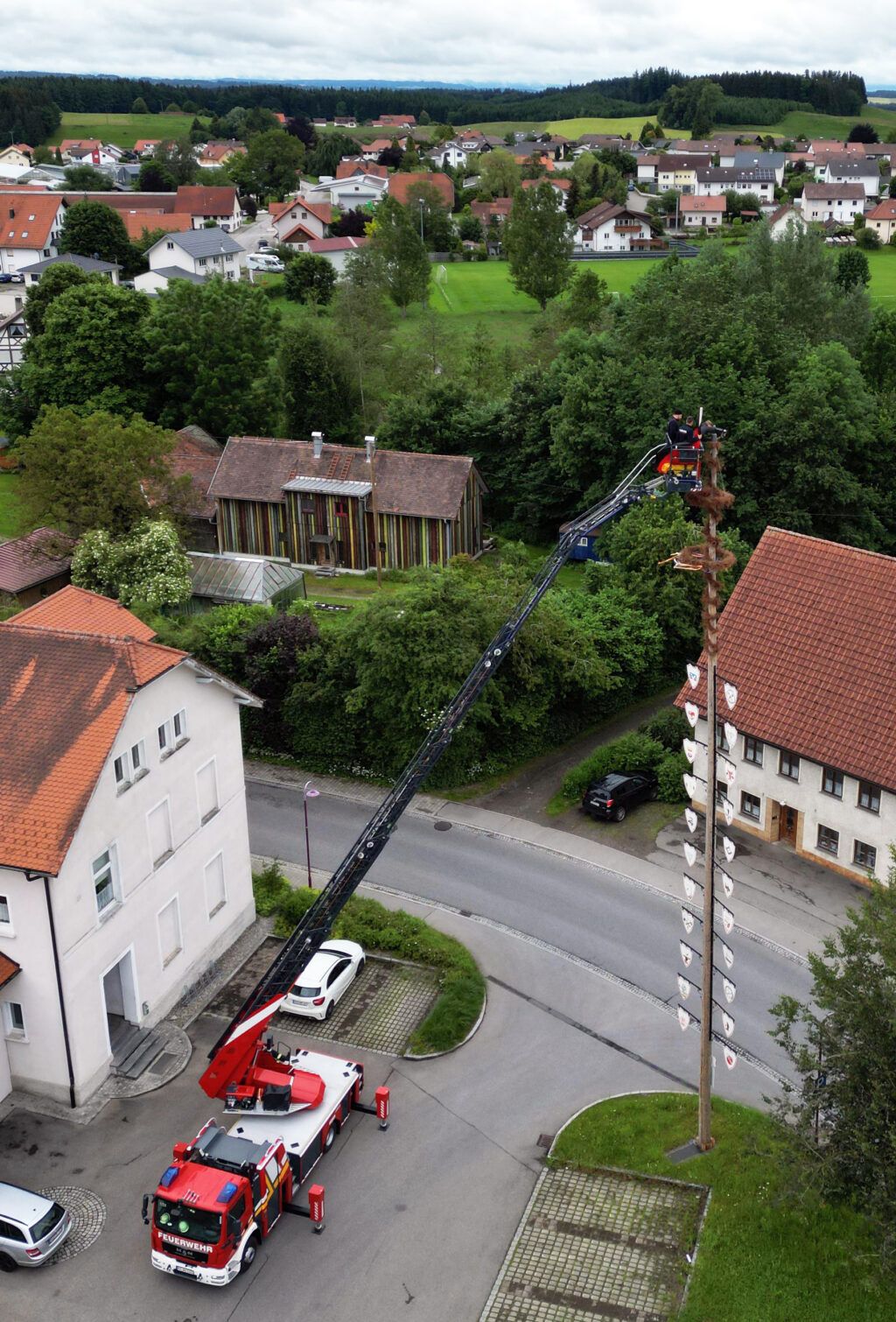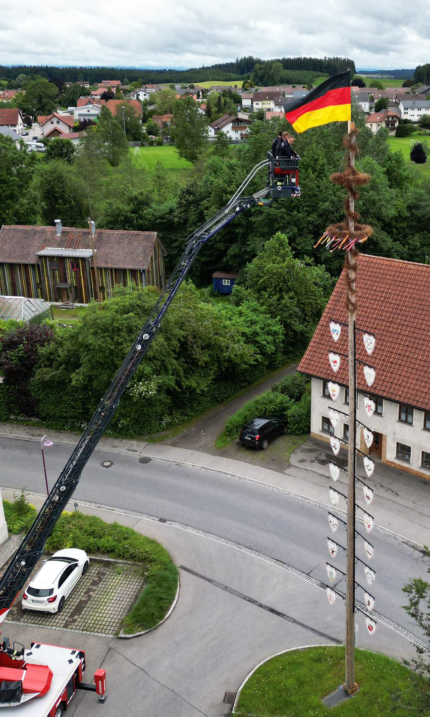 Arnacher Feuerwehr brachte Deutschlandfahne am Maibaum an