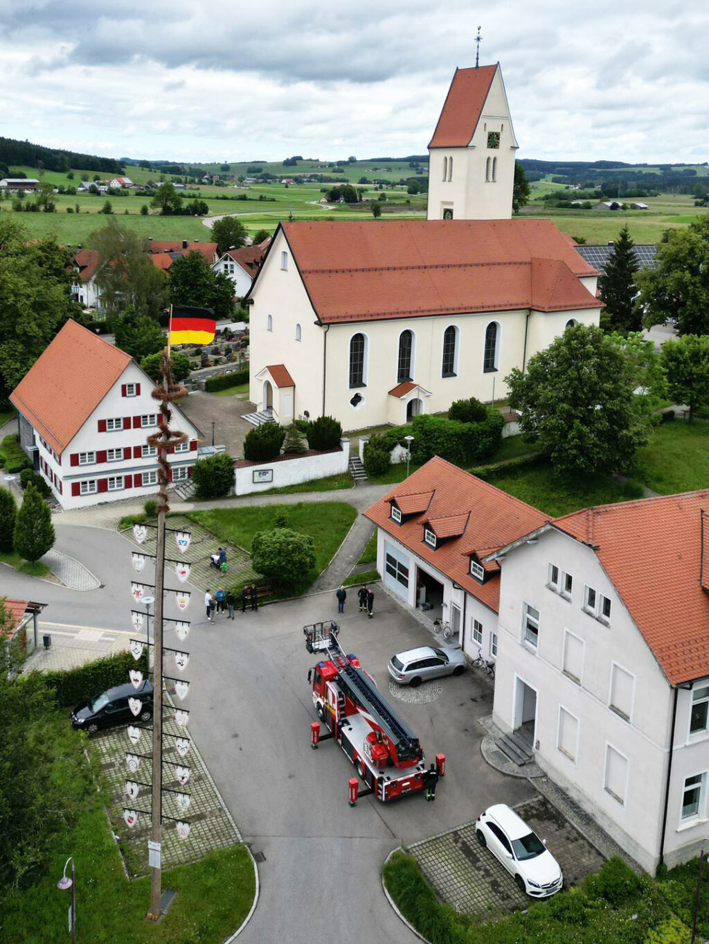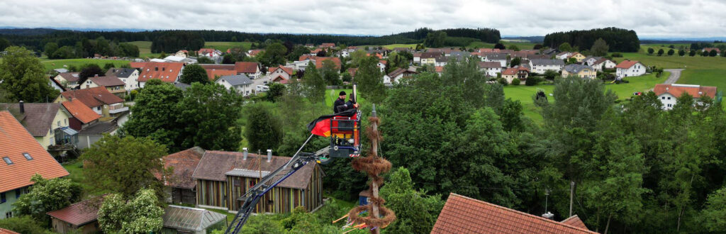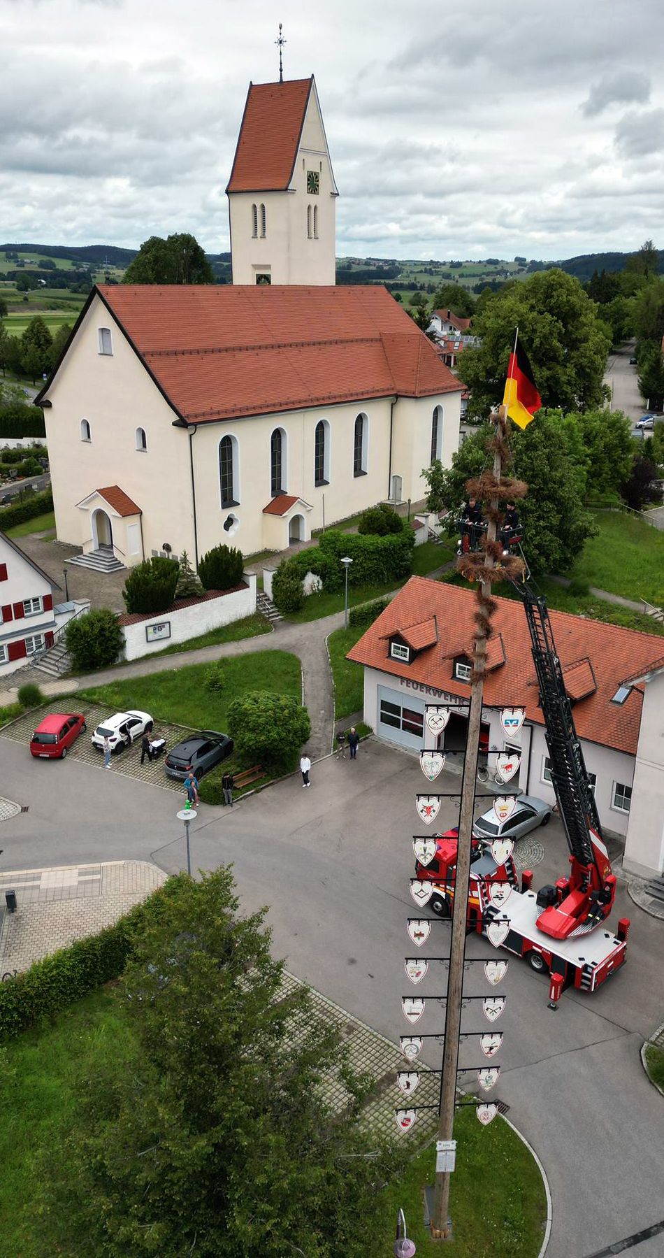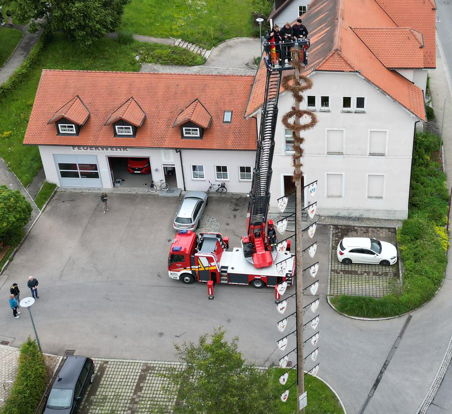 Arnacher Feuerwehr brachte Deutschlandfahne am Maibaum an