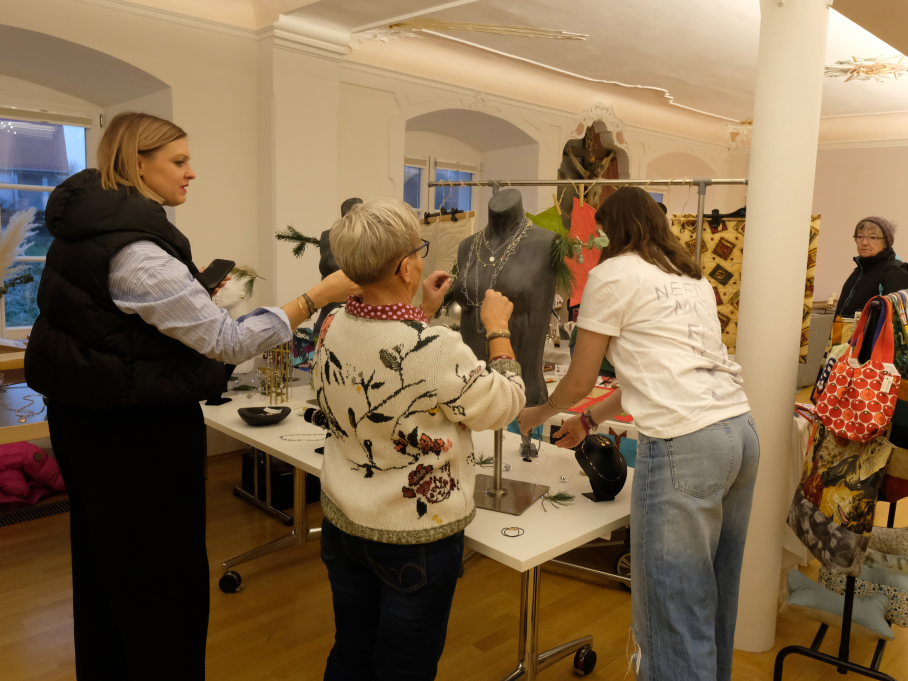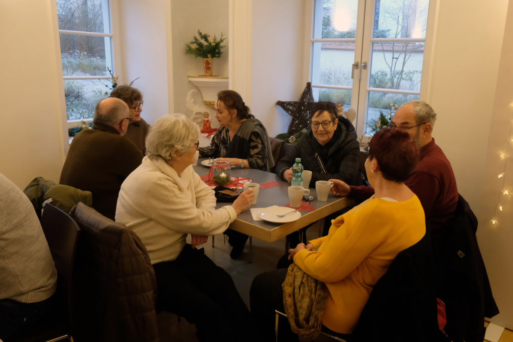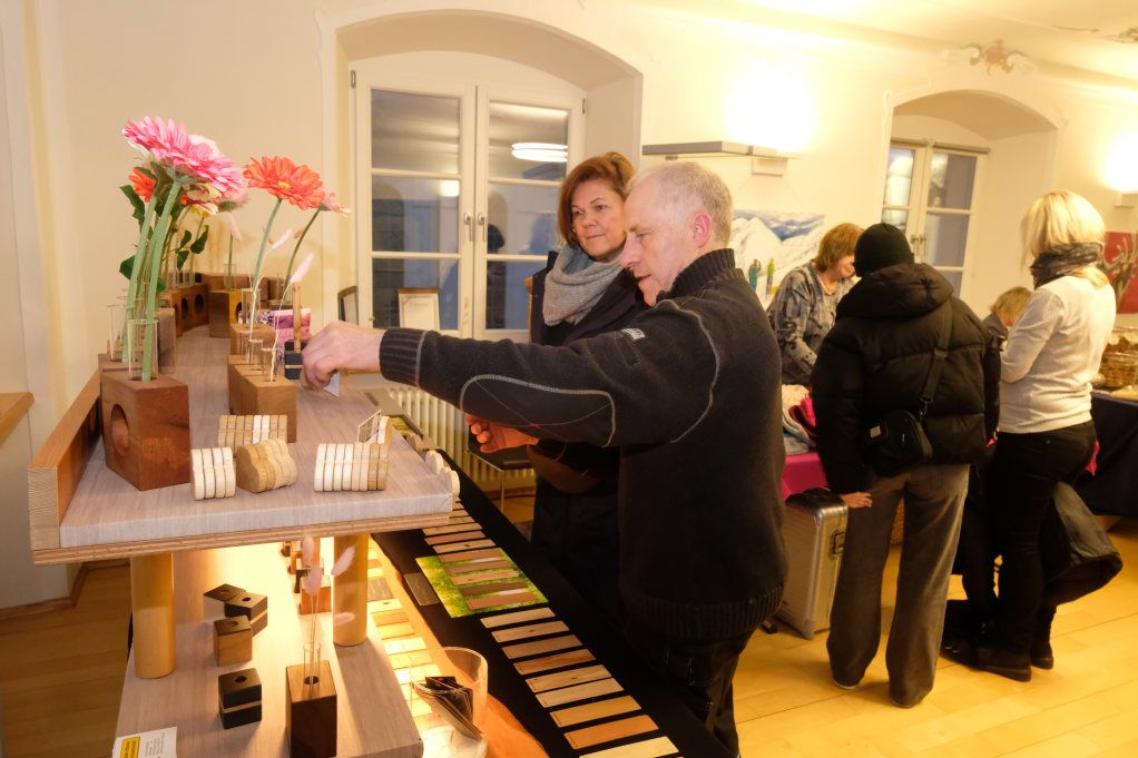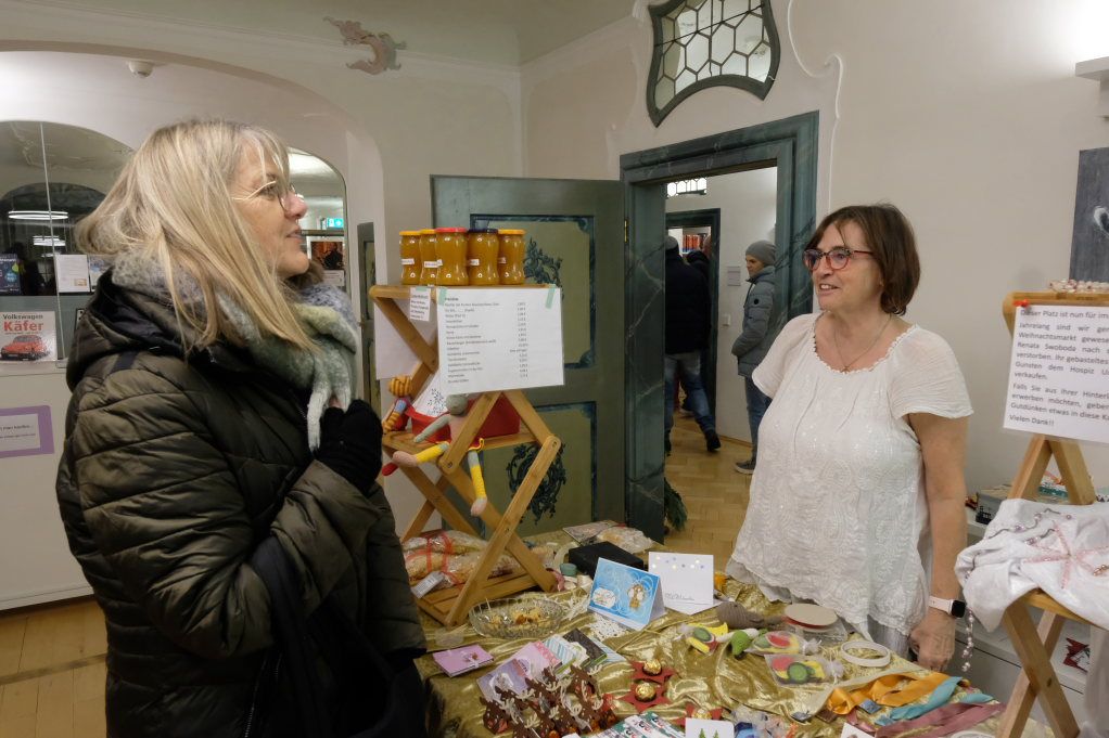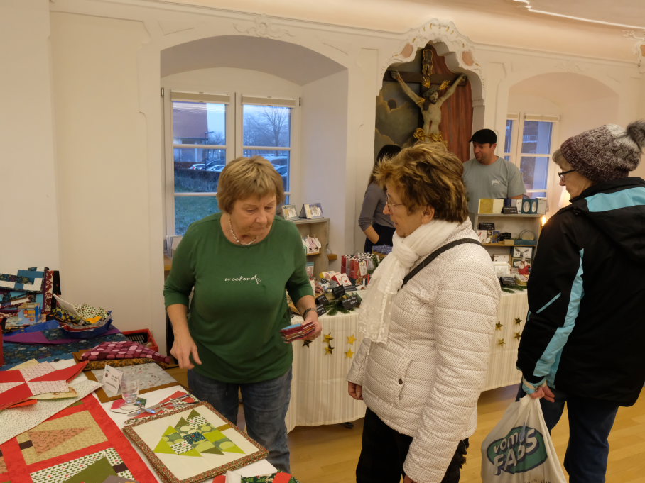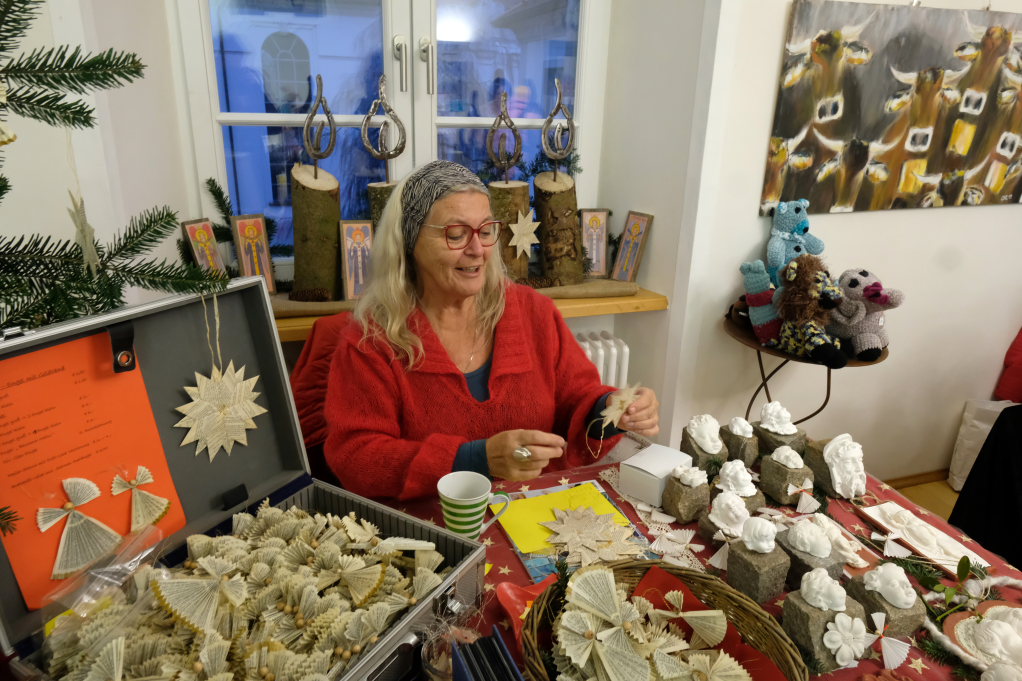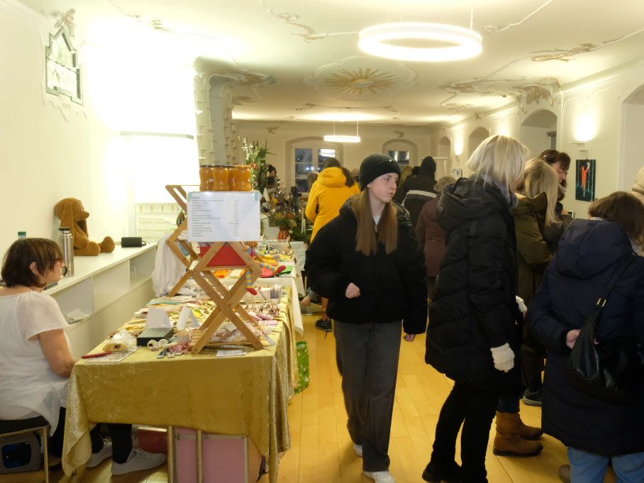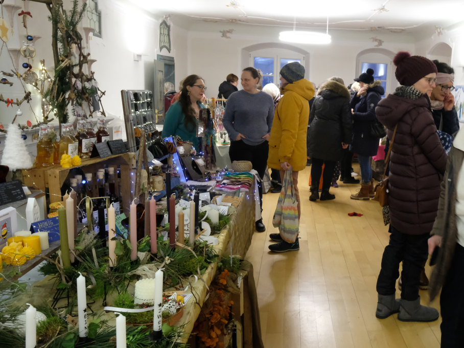 Im Sitzungssaal (Erdgeschoss) und in der Stadtbücherei (2.OG) im Kapitelsaal von Maria Rosengarten konnten wieder Künstler und Kunsthandwerker ihre Werke präsentieren. Etwa Krippen oder Baumschmuck aus dem „Koffer voller Engel“. Im Nebenraum des Sitzungssaales konnte man sich – besonders am nebelkalten Samstag – im Liederkranzcafé in heimeliger Atmosphäre aufwärmen und bei Kaffee und Kuchen nette Gespräche führen.