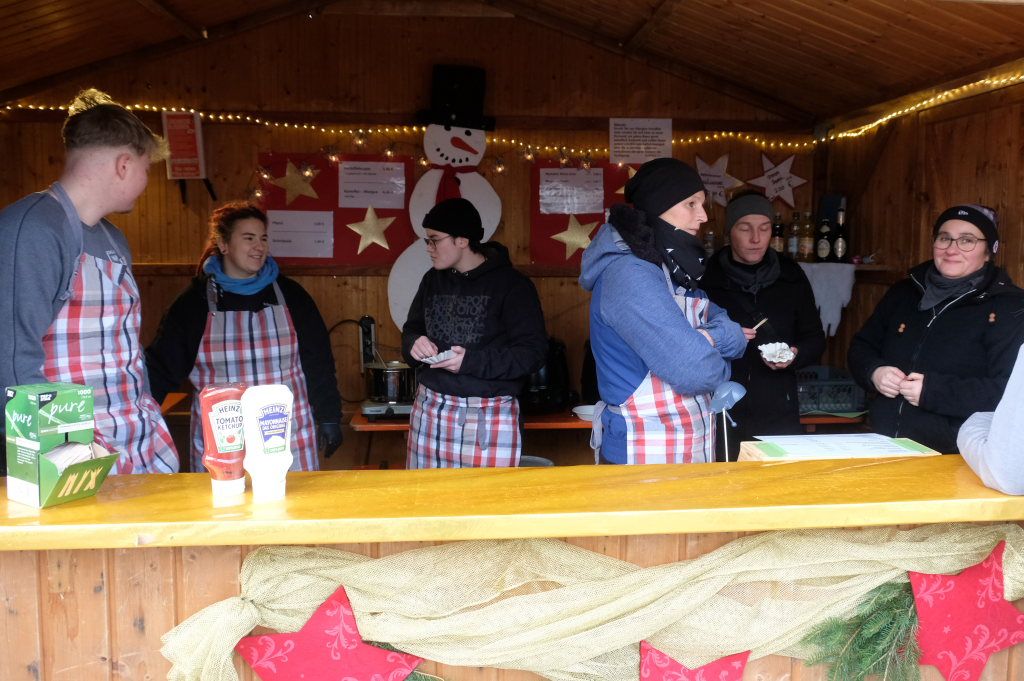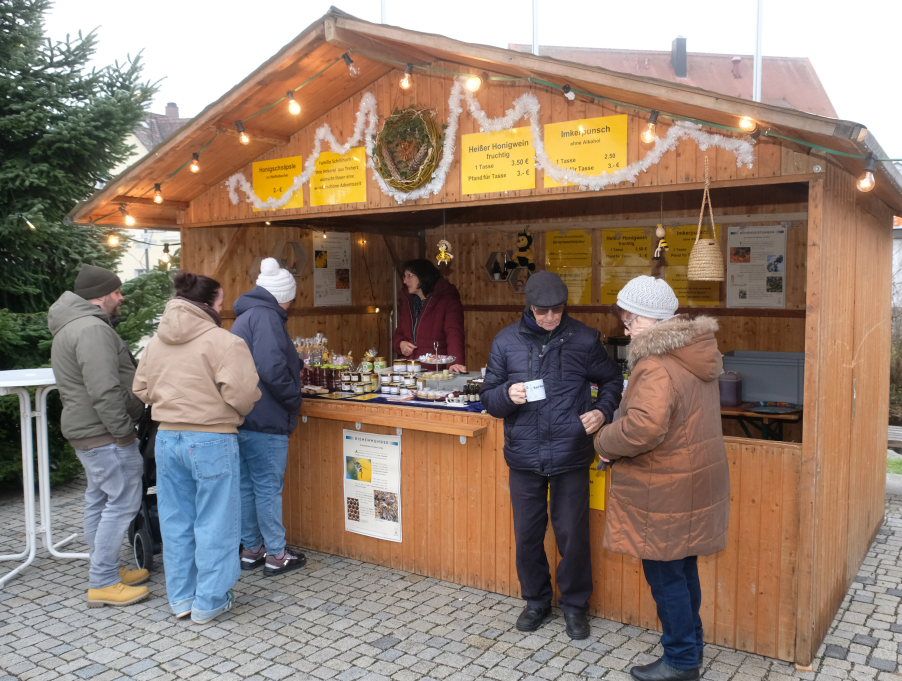 Zurück auf dem Klosterplatz: Viele Vereine und Institutionen haben hier seit vielen Jahren ihre Stände aufgebaut, um ihre Spezialitäten anzubieten. So unter anderem die Turner der TSG ihre Feuerwurst, die Narrengilde Unterschwarzach ihre Kartoffelspezialitäten, der Fischereiverein bot das eher in England bekannte Fisch & Chips, sowie der Fanfarenzug seine Maroni. Nicht zu vergessen die Honig-Spezialitäten der Hobby-Imkerei Schöllhorn mit ihrem legendären Honigschnaps. Besondere Snacks für die felltragenden Vierbeiner boten Tierschutzverein und Tierschutz-Team, beim DRK-Ortsverein gab´s Punsch und Glühwein.