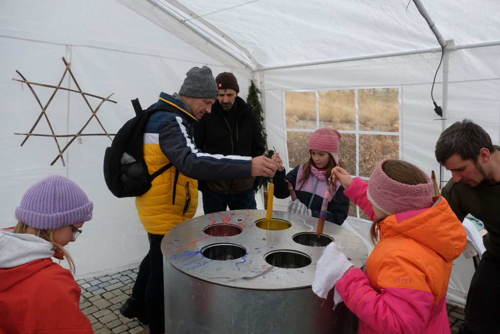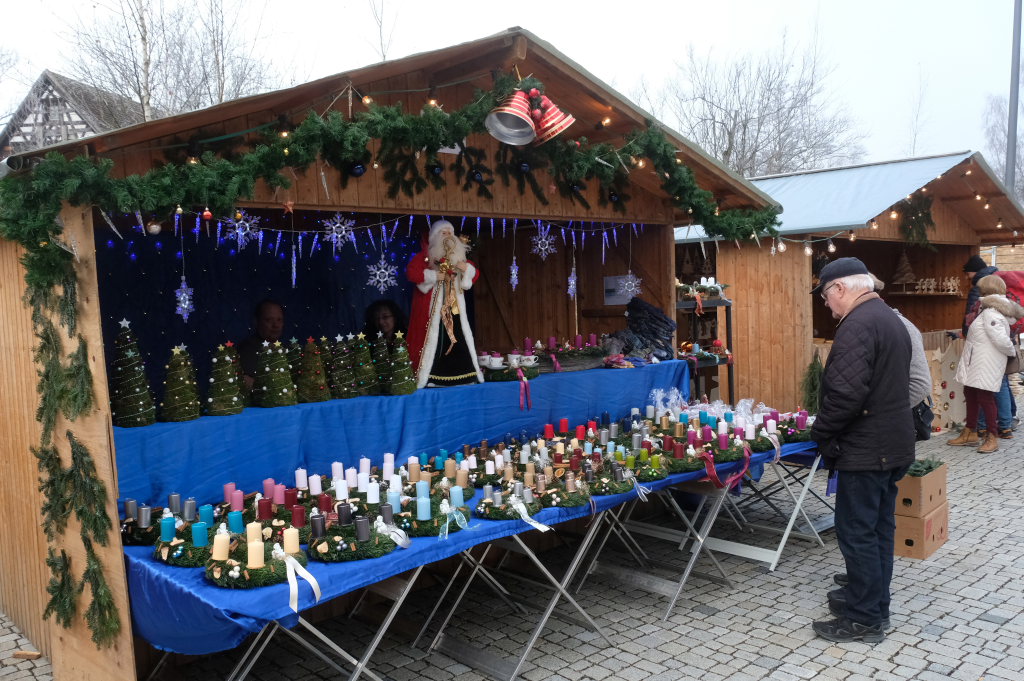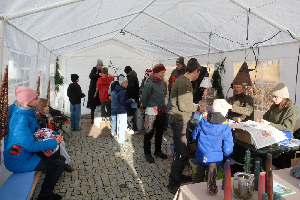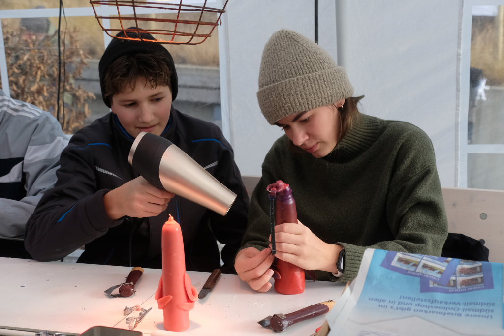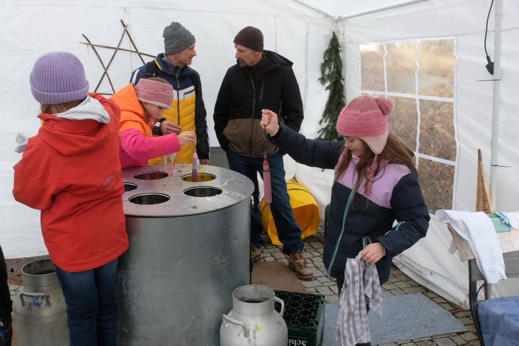 Am Sonntag war dann das Zelt neben dem Stand der christlichen Bücherstube auf dem Klosterplatz immer gut besucht, denn dort hatte Groß und Klein Gelegenheit, bei der Kerzenzieherei im mollig warmen Zelt eigene Advents- und Weihnachtskerzen herzustellen.