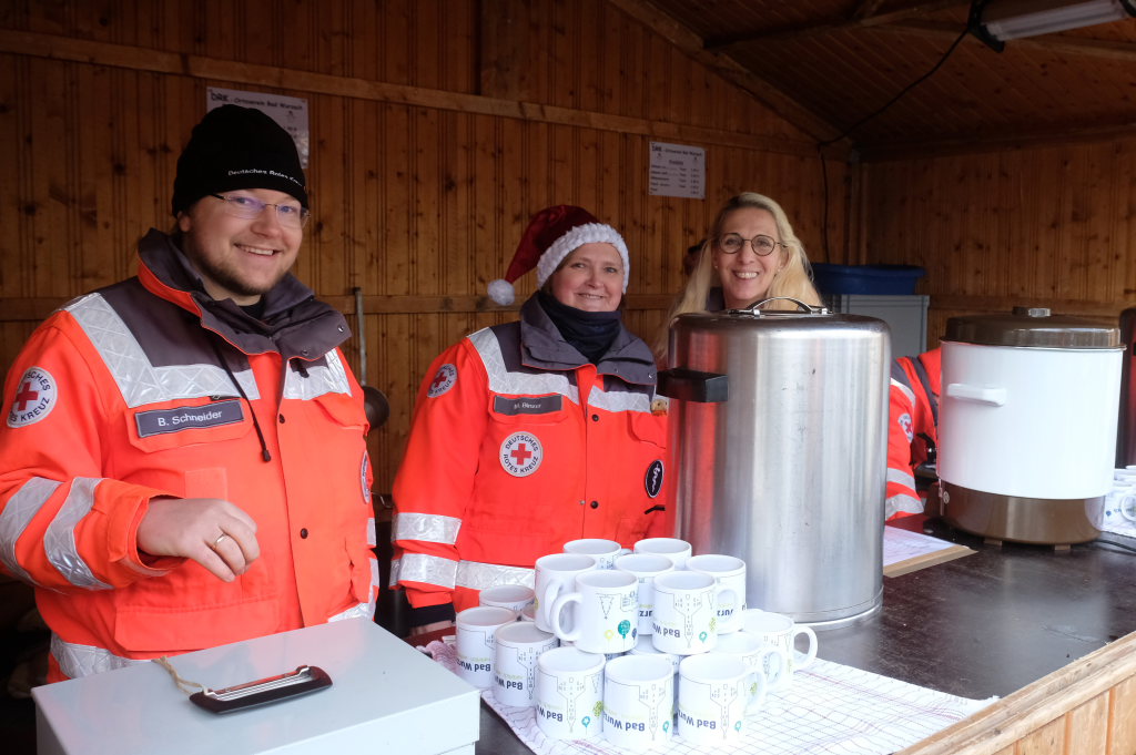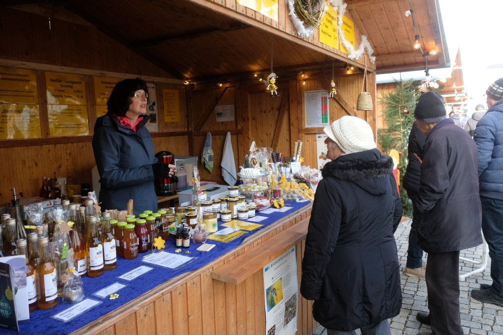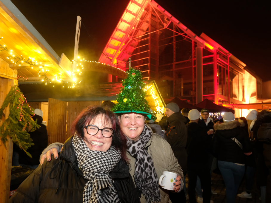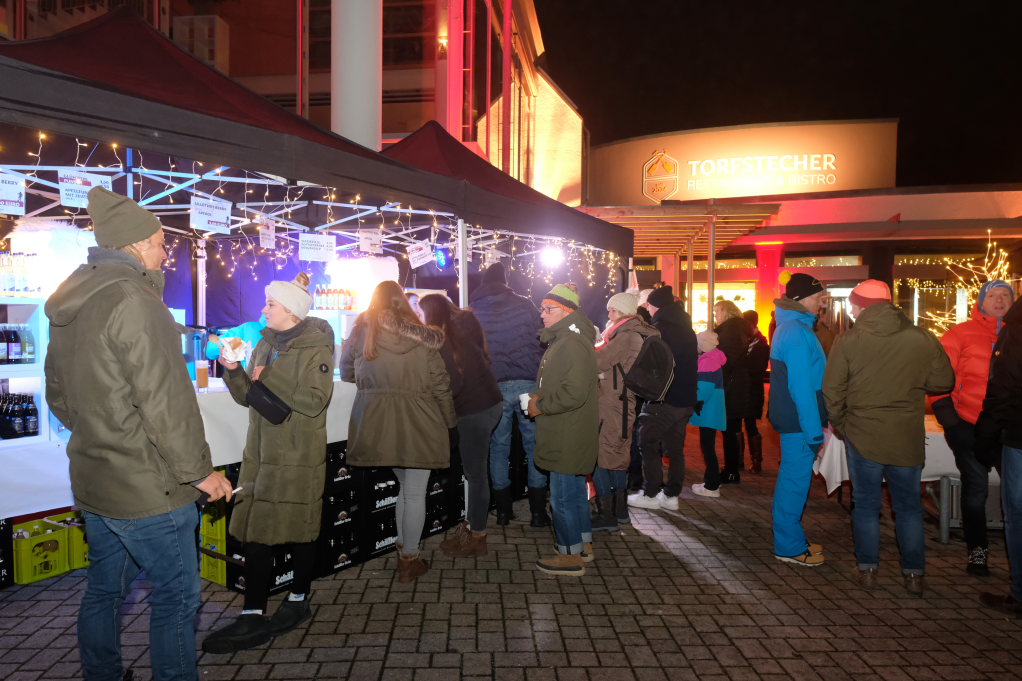 Bad Wurzach – Margit Rock von der Bad Wurzach Info (BWI) und Petra Greiner vom Orga-Team hatten nicht zuviel versprochen: Die Vergrößerung des Angebotes beim Weihnachtsmarkt in diesem Jahr neben Klosterplatz, Sitzungssaal und Stadtbücherei auch die Fläche vor dem Torfstecher zu nutzen, lohnte sich.