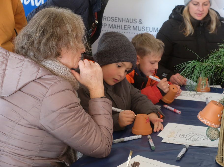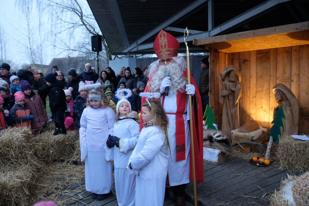 Eine große Neuerung war sehr erfolgreich: Auch dank des Teams des Torfstechers um Petra Springer und Giorgio Maucher mit seiner Schneebar war rund um den Musikpavillon immer etwas geboten. Denn das Weihnachtsmarktfestgelände wurde um die Fläche beim Torfstecher erweitert. Dort fand auch der SV Seibranz eine neue Heimat, dessen Rehwurst in den letzten Jahren bereits zur Legende geworden war und der wegen der Lawinengefahr im vergangenen Jahr kurzfristig hatte pausieren müssen. Beim Pavillion fand dann an beiden Tagen das Kinderprogramm seine Heimat, mit tierischen Geschichten erzählt von Naturpädagogin Petra Wolz am Samstag und dort zog auch das Puppentheater Toldrian am Sonntag dann viele kleine Fans an. Natürlich kam dann am Samstagnachmittag der Nikolaus mit seinen drei Engeln dorthin, um an die Kleinen Hefenikoläuse zu verteilen.