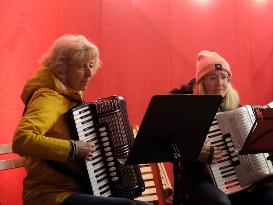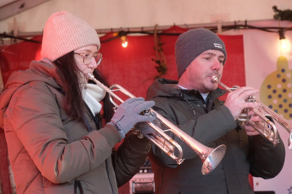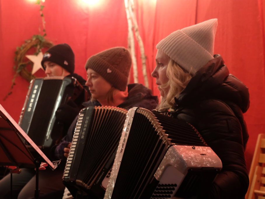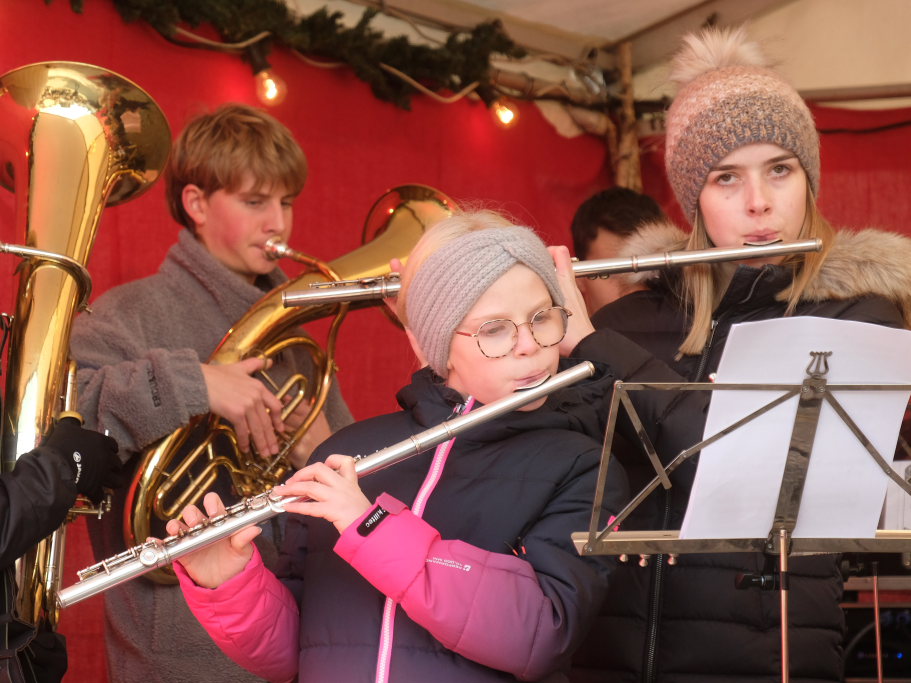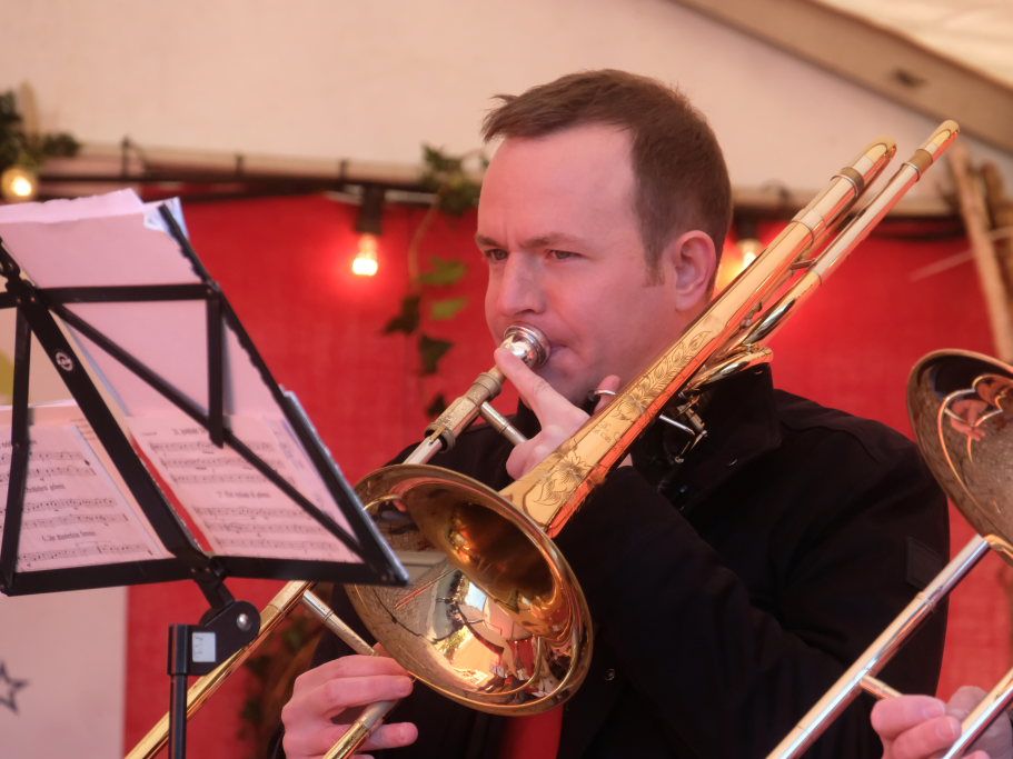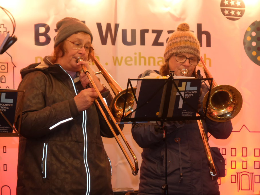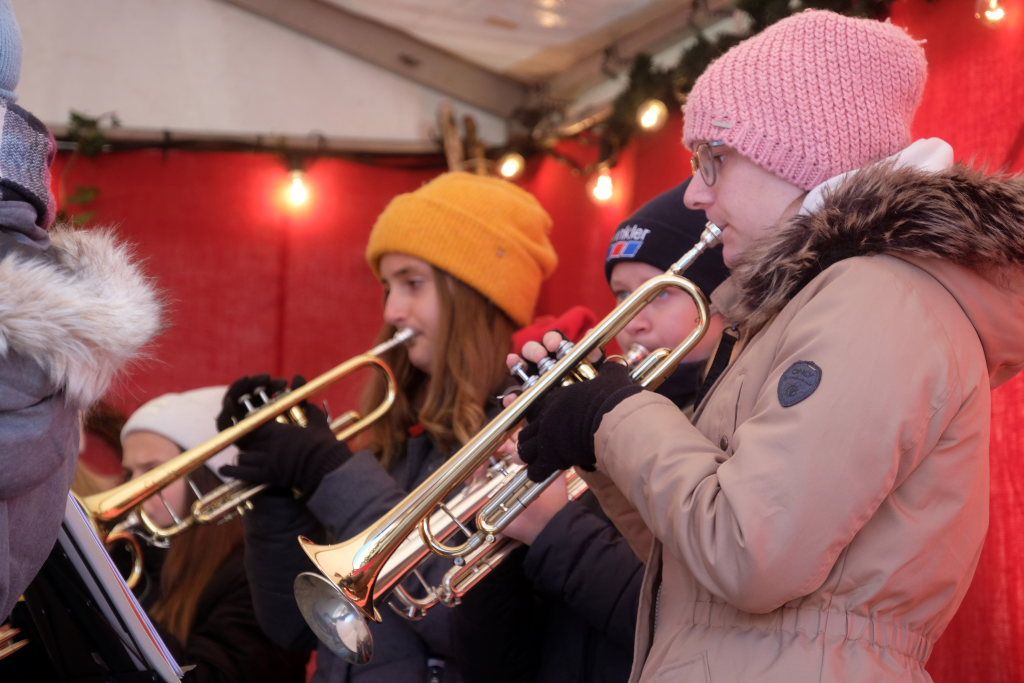 Dort schlug dann an beiden Tagen das musikalische Herz des Weihnachtsmarktes. Verschiedene Ensembles der Jugendmusikschule, das Akkordeon-Orchester von Dorith Strobel, der evangelische Posaunenchor und auch das Duo Stringendo entboten bis zum frühen Abend musikalische Advents- und Weihnachtsgrüße. Neu waren dort dann am Sonntag die Jagdhornbläser Bad Wurzach, der Musikverein Seibranz schickte seinen Nachwuchs, während beim Musikverein Haidgau Dirigent Alexander Werner dann selbst zur Posaune griff und gemeinsam mit einer erlesenen Auswahl seiner Haidgauer Musiker Weihnachtsstimmung verbreitete, ehe das Alphorn-Quintett Albers für das musikalische Finale sorgten.