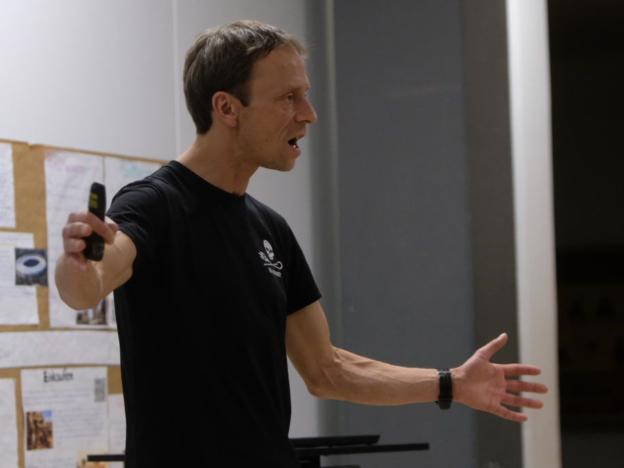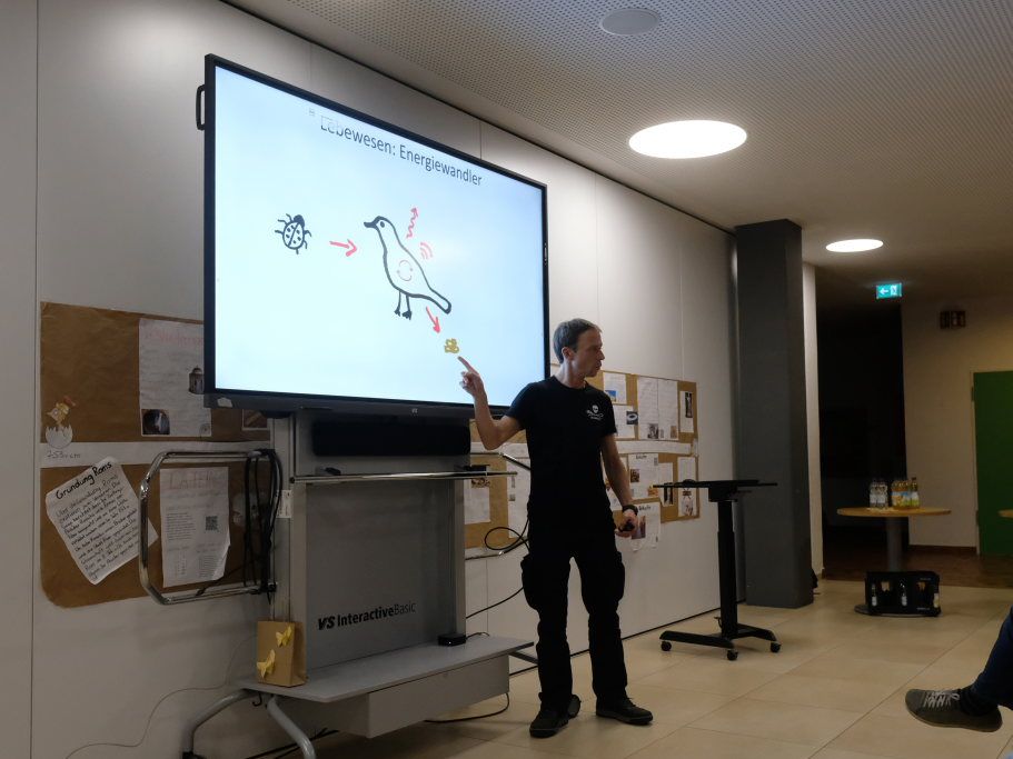 „Alles hängt mit Allem zusammen“, dieses Zitat von Alexander von Humboldt, dem großen Forschungsreisenden des 18. und 19.Jahrhunderts empfindet Lotzkat als „den coolsten Ausspruch, den je ein Berliner getätigt hat“. Und er treffe die Kernaussage zum Thema Artenvielfalt. Der Science-Slammer lockerte seine wissenschaftlichen Ausführungen immer wieder mit kleinen Ratespielen auf und garnierte dessen Ergebnisse mit coolen Sprüchen. Etwa beim Eröffnungsrätsel, als 100 % der rund 60 Zuhörer die Wespe als den Plagegeist identifizierten, der im Sommer süßes zu Essen zur Qual macht. „Manchmal funktioniert Demokratie ja doch“.