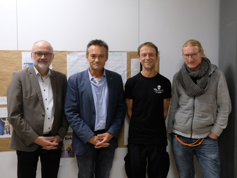 Die Akteure des diesjährigen Kolloquiums v.l. Schulleiter Klaus Amann, Dr. Siegfried Roth Leiter des Naturschutzzentrums, Science Klammer Dr. Sebastian Lotzkat und Fachlehrer Urs Fuchs.