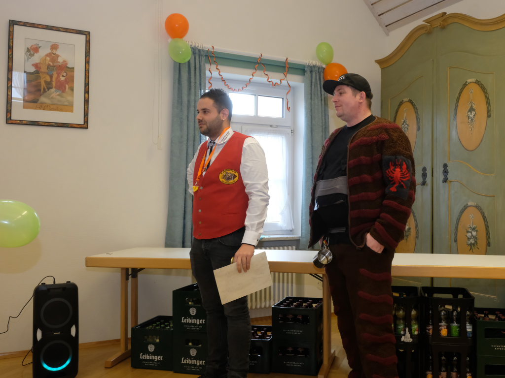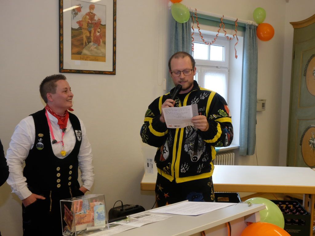 Die Pflichten waren denn auch schnell abgearbeitet, und so konnte Ewald Bodenmüller auch kurz danach den Kollegen aus den Reihen der Zunftmeister stolz das KI-generierte Eintürner Narrenlied vorspielen. Aber nicht nur das: Auch ein eigenes Gedicht hat die Narrenzunft „Bockland“ Eintürnen jetzt vorzuweisen, dass – ebenfalls im Rahmen des Zunftmeisterempfangs – von Diana Tant vorgetragen wurde.