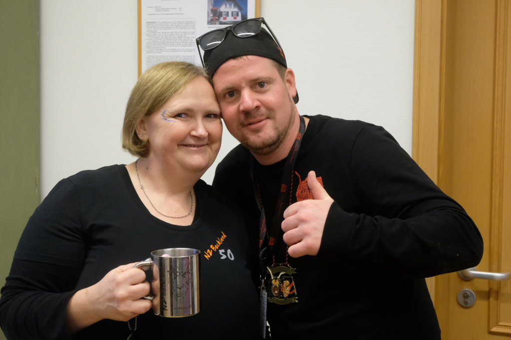 Zunftmeisterin Veser konnte sich alsbald darauf konzentrieren, wichtigen „Mitarbeitern“ Dank zu sagen. Da wäre zum einen die Narrenzunft aus Waltershofen, die freundlicherweise den Plaketten-Verkauf stemmte, Annika Bodenmüller, die gemeinsam mit Veser den Sprecherwagen beim Rathaus besetzte. Dem Musikverein, der die NZ beim Ausschank unterstützte, die vier Mädels am Ausschank und der gesamten Zunft, die so fleißig im Vorfeld geackert hatten. Roman Würzer „als Mann für alle Fälle“, der für Absperrung und Kehrmaschine sorgte. Und natürlich ihrem Vize Ewald, ohne den der Narrensprung gar nicht zu stemmen gewesen wäre.