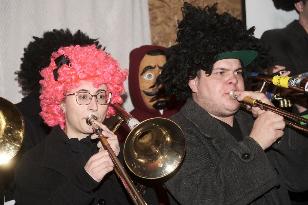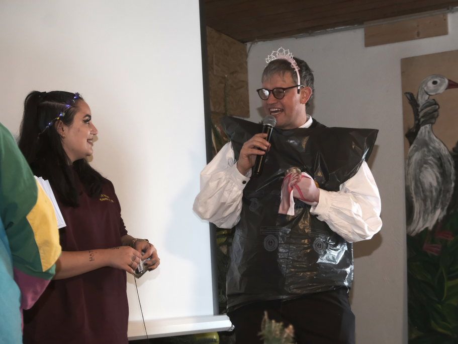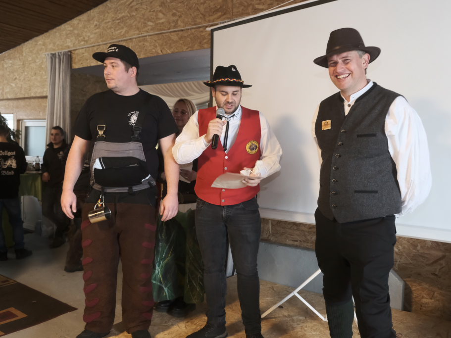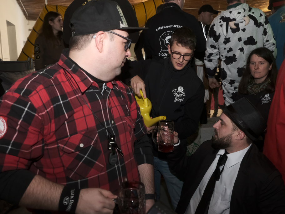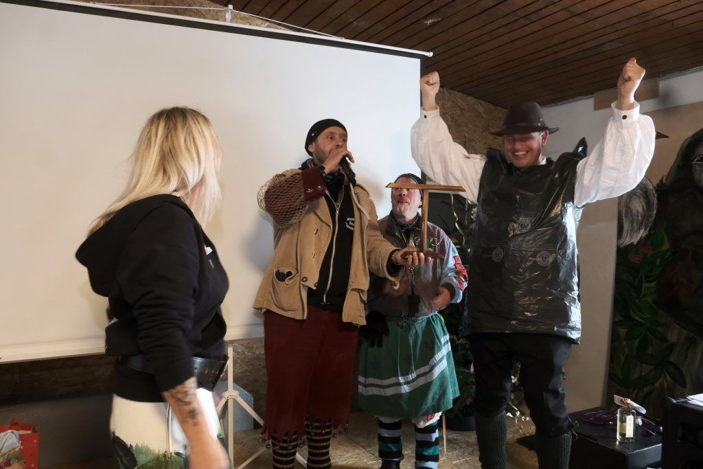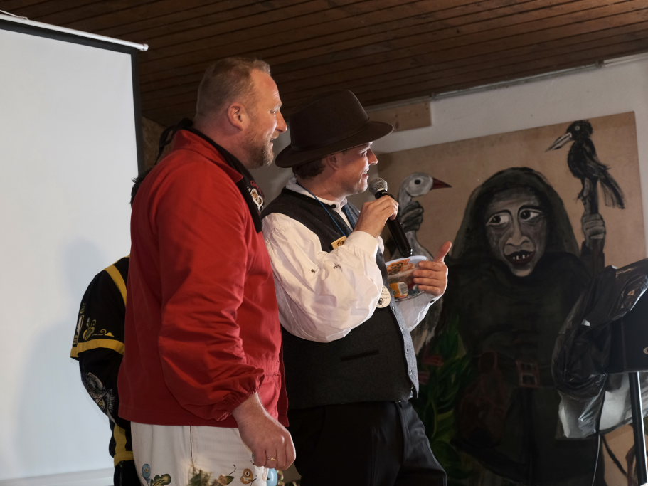 Die Mitglieder der Langjuppen um Willi Bu und Conny Steiner hatten sich für ihren Zunftmeisterempfang etwas einfallen lassen: Jede Zunft bzw. Musikvertretung sollte anhand von mehreren Stichpunkten wie Hobbies, besondere Merkmale, Eigenschaften, Aussehen und Name oder Spitzname seinen Zunftpartner beschreiben. Das Spektrum der Ansichten reichte da etwa beim Aussehen von zuckersüß bis geht so, die Lieblingsgetränke reichten vom profanen Bier bis exotischen Mixgetränken wie dem Playa-Schorle (Wodka-Lemon Maß!).