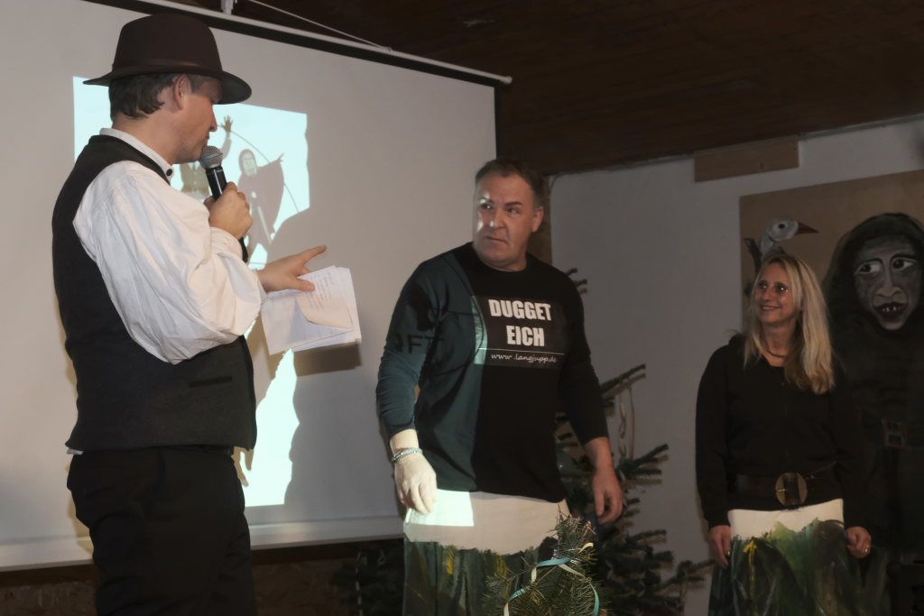 Apropos Narrensoma: Daniel Wassner, der Haidgauer Zunftmeister, verriet im Rahmen seines Beitrages, dass dieser bei den Langjuppen derzeit bei einer rekordverdächtigen Zahl von 73 liegt. Als Gastgeschenk hatte er deswegen Süßigkeiten für die Kleinen mitgebracht. Mit den Großen ging er härter ins Gericht: Für sie hatte er eine Fernsehzeitschrift und Kondome mitgebracht, damit diese sich trotz der harten Winter in dieser Gemeinde auch noch mit etwas anderem beschäftigen konnten…