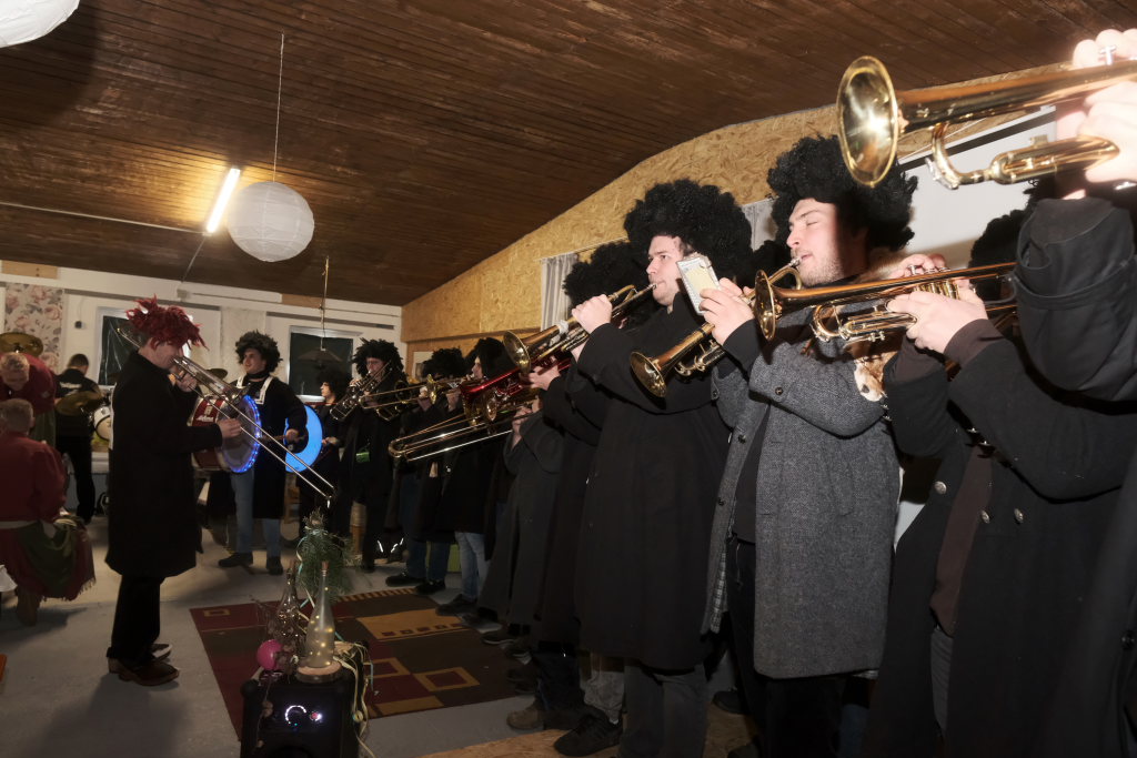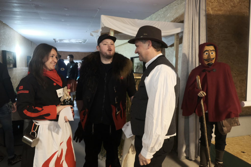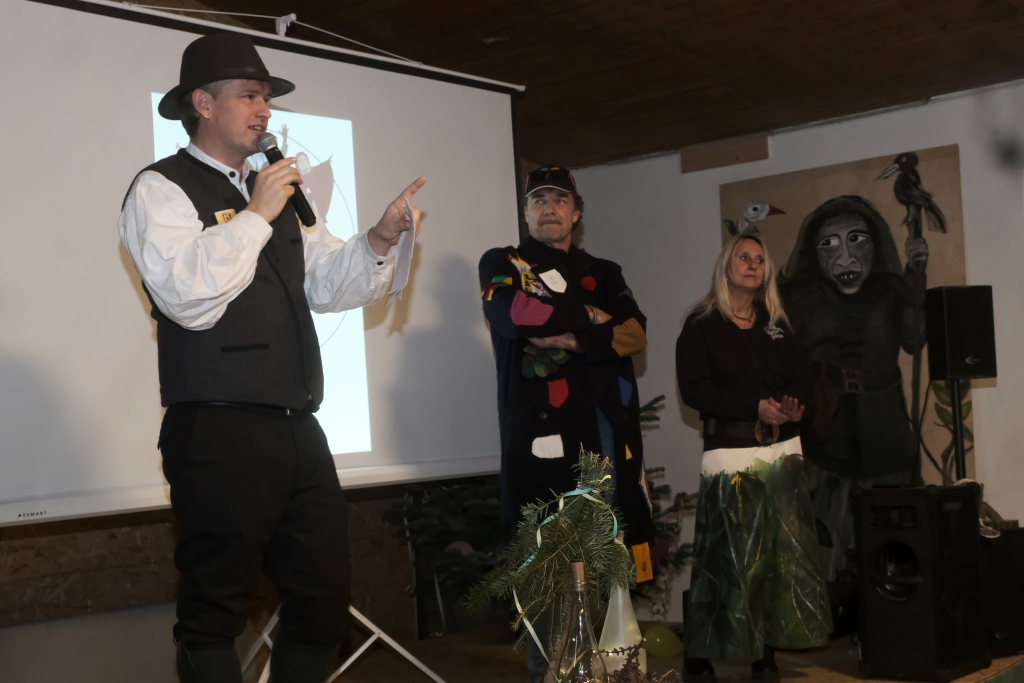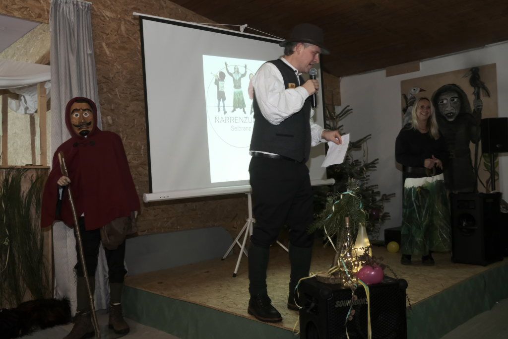 Seibranz – Bereits zum siebten Mal veranstaltete die Seibranzer Narrenzunft um Zunftmeister Willi „WilliBu“ Butscher einen Narrensprung. Beim Zunftmeisterempfang – erstmals nicht in der Festhalle, sondern in der „zweiten Heimat“ der Zunft, im ehemaligen Stall der Familie Menig in Seibranz-Ösch – stellten die Langjuppen nun ihre zweite Figur, den „Wandersmann“ der närrischen Öffentlichkeit vor.