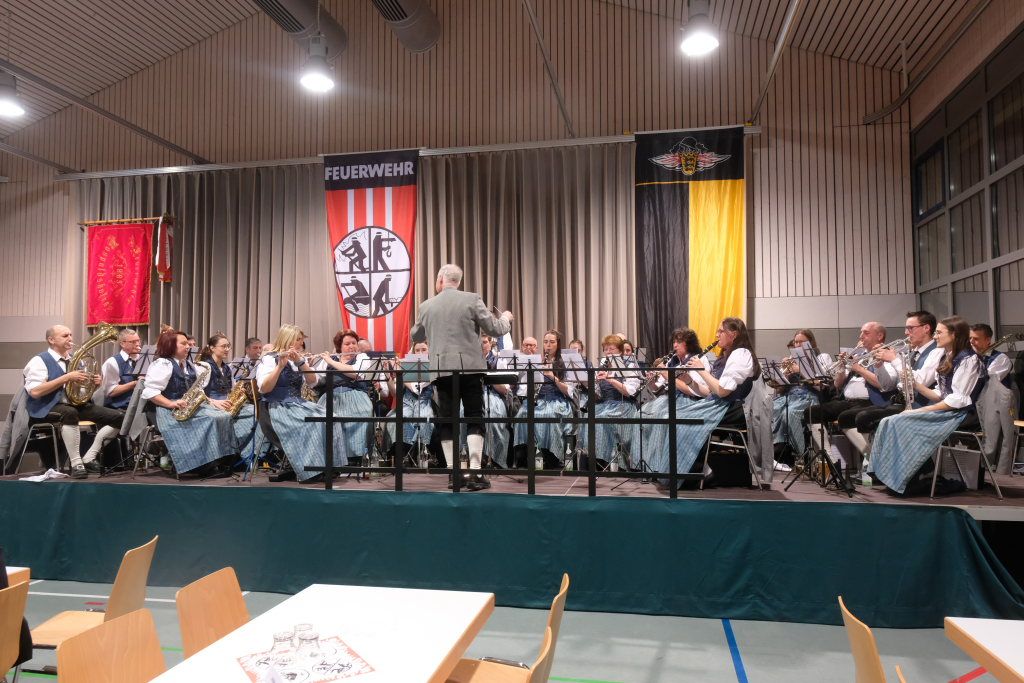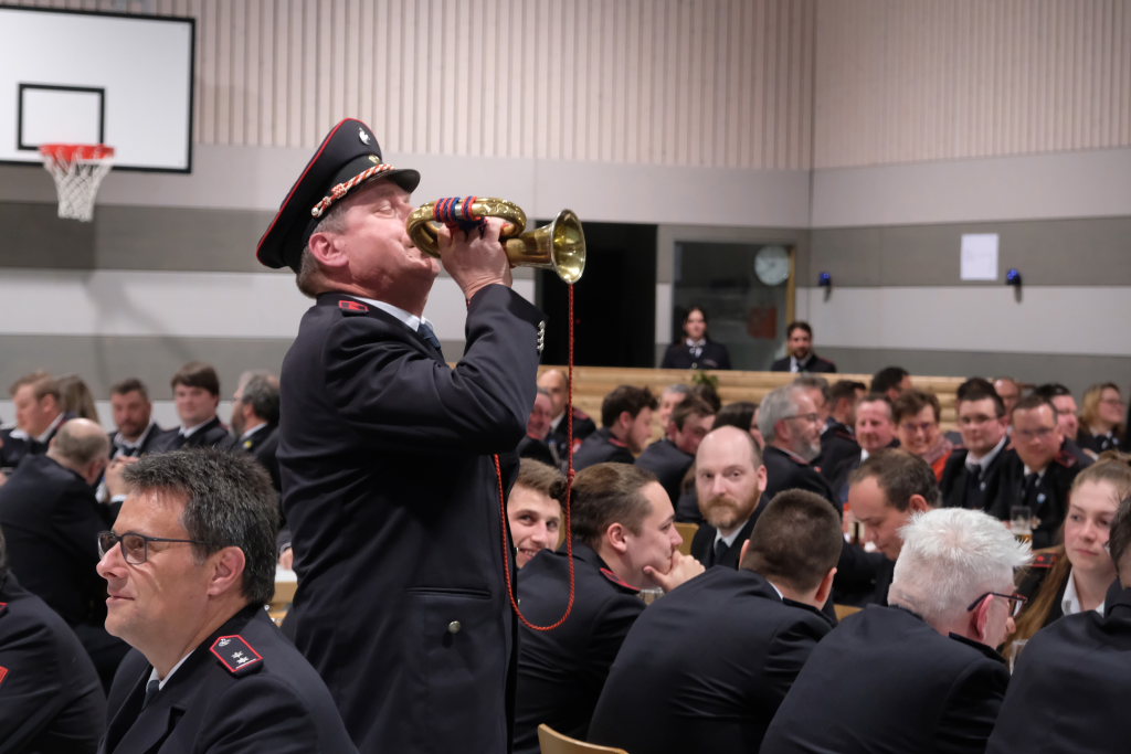Als Gastgeber der Jahreshauptversammlung der Gesamtfeuerwehr Bad Wurzachs fungierte die Abteilung Gospoldshofen, die in diesem Jahr die Kameraden der anderen Abteilungen in der Friedrich-Schiedel-Halle in Dietmanns bewirten musste, weil die Halle in Seibranz wegen deren Sanierung nicht zur Verfügung stand. Dafür saßen die Musiker des Musikvereins Seibranz auf der Bühne und sorgten für den musikalischen Rahmen der Versammlung, zu der Kommandant Rolf Butscher neben vielen Gemeinderäten und Ortsvorstehern auch den Kommandanten der Werksfeuerwehr von Verallia, Giuseppe Dodaro, mit seinem Stellvertreter Anton Moser, vom Roten Kreuz die Ortsverbandsvorsitzende Petra Greiner sowie die Bereitschaftsleiterin Leonie Hofer begrüßen konnte.