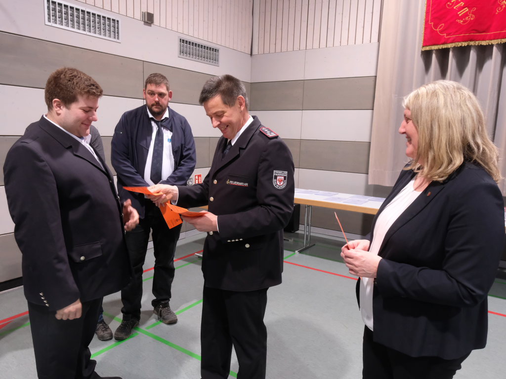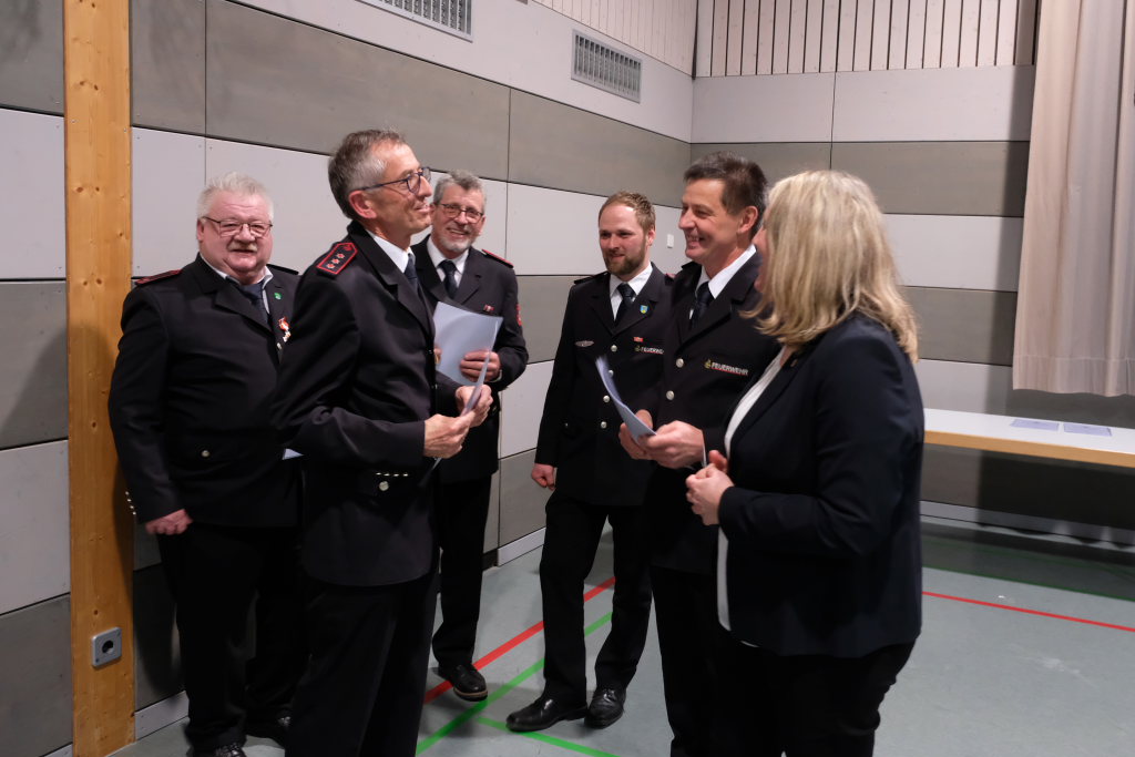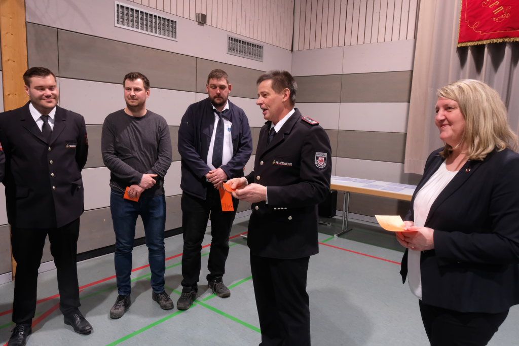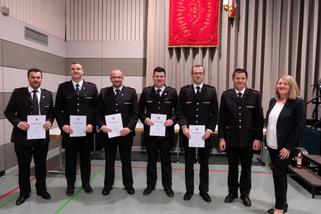 Reinhold Joos aus Ziegelbach wurde zum Löschmeister befördert. Zum Oberlöschmeister ernannt wurden: Dominik Schellhorn, Arnach; Peter Kiebler, Ziegelbach; Stefan Reck, Haidgau; Martin Walter, Stadt; Ralf Minsch, Seibranz.