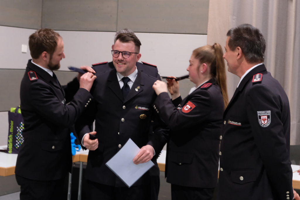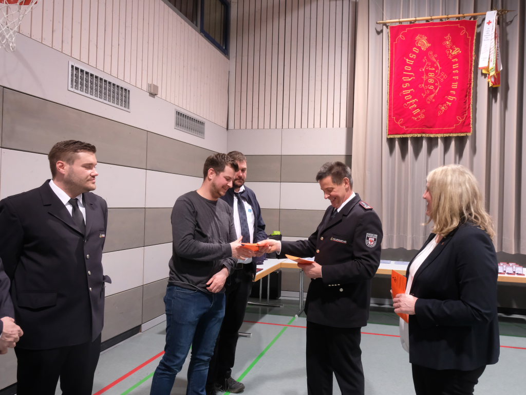 Mit den Neuaufnahmen in die Aktive Wehr ging es zu den Beförderungen und Ehrungen.