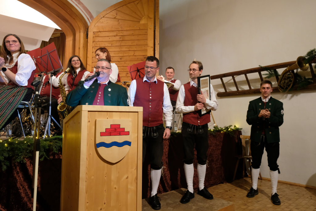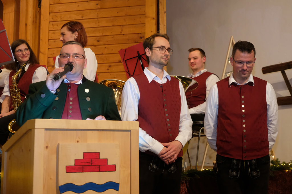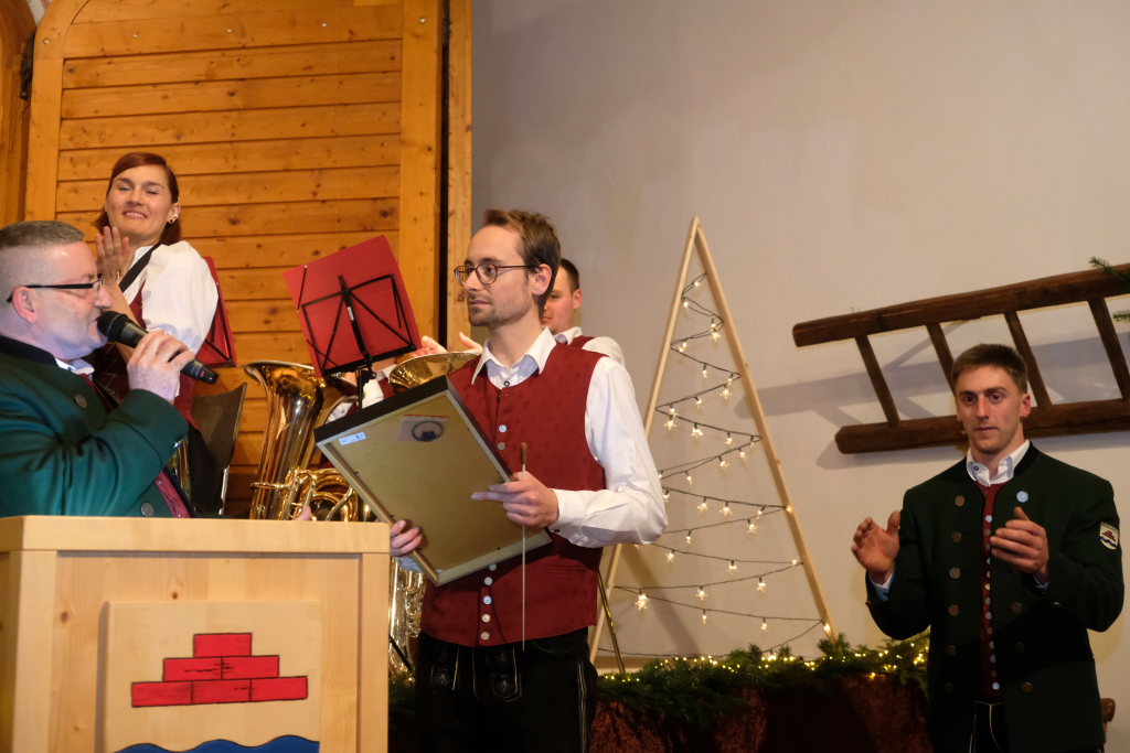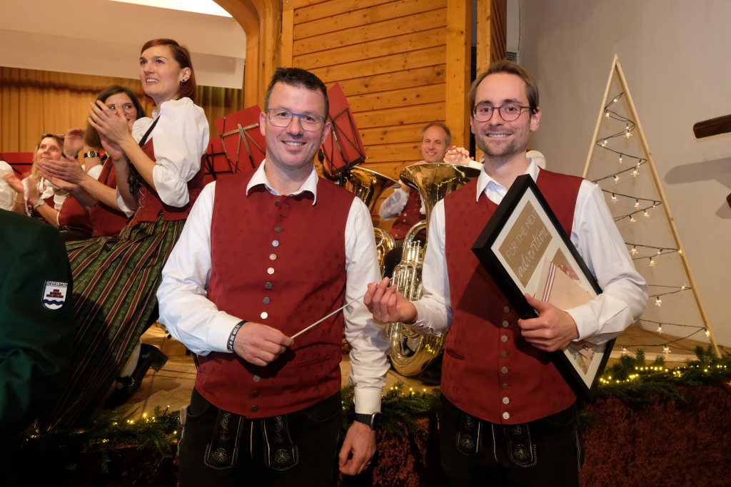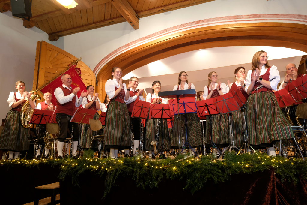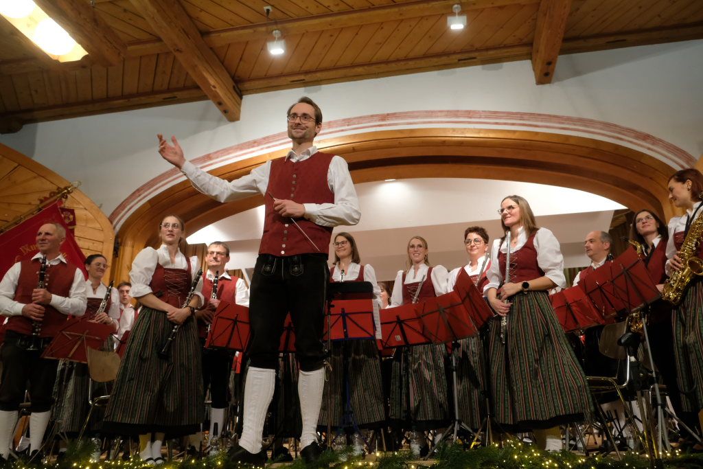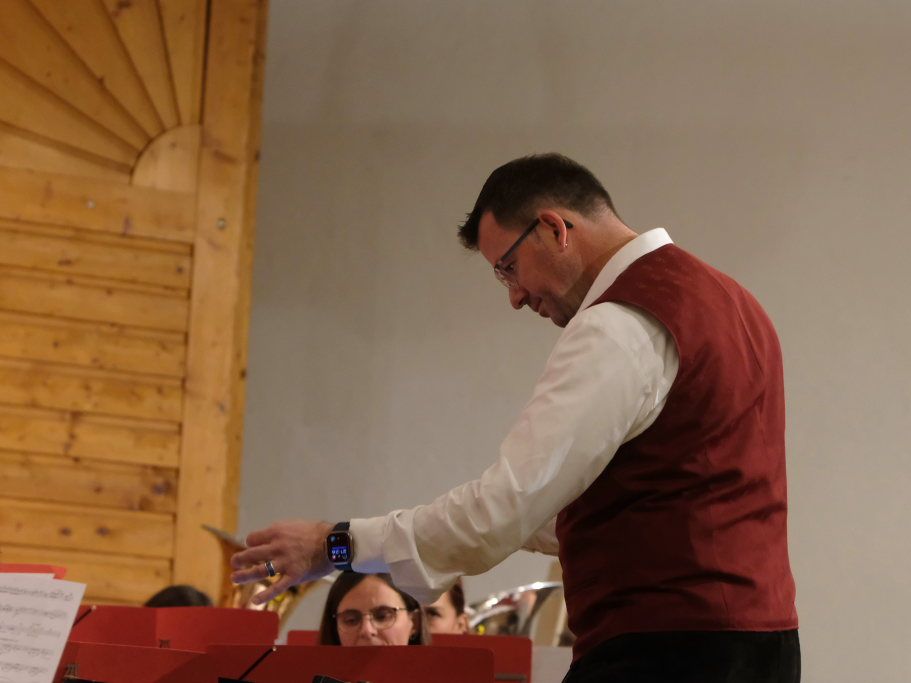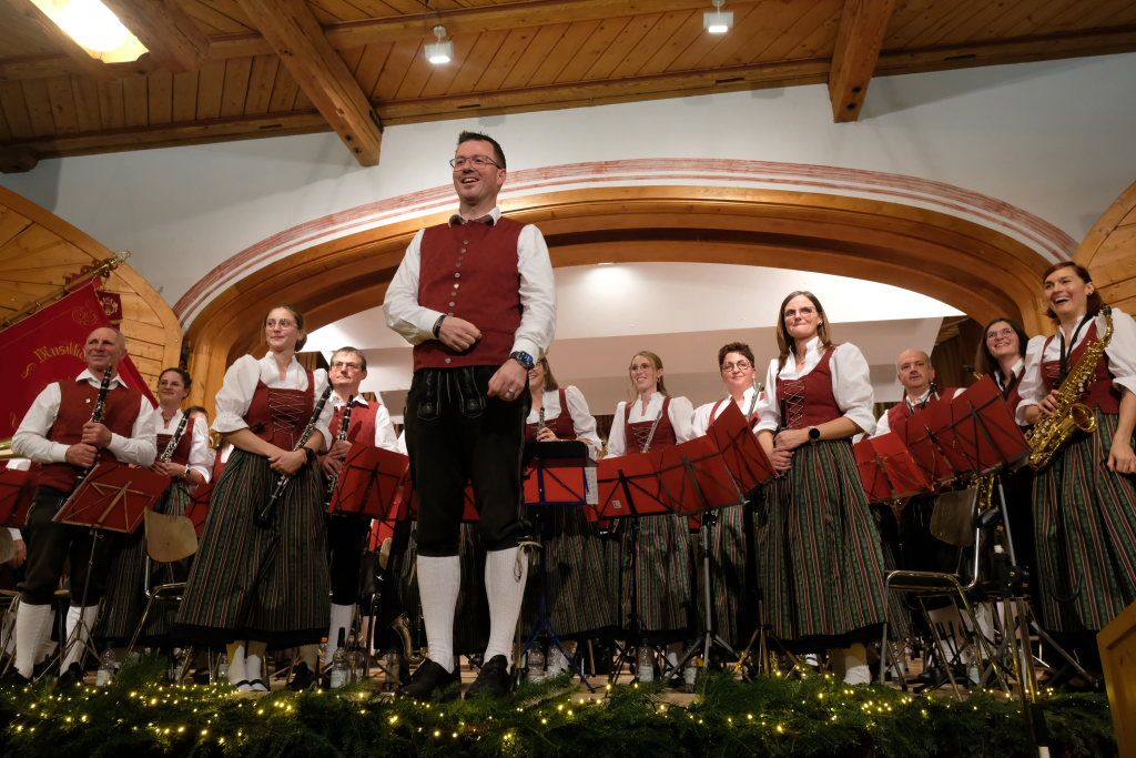 Oliver Herz wird von „seiner“ Musikkapelle mit Beifall und einem Geschenk als Dirigent verabschiedet. Als Hornist macht er weiter.