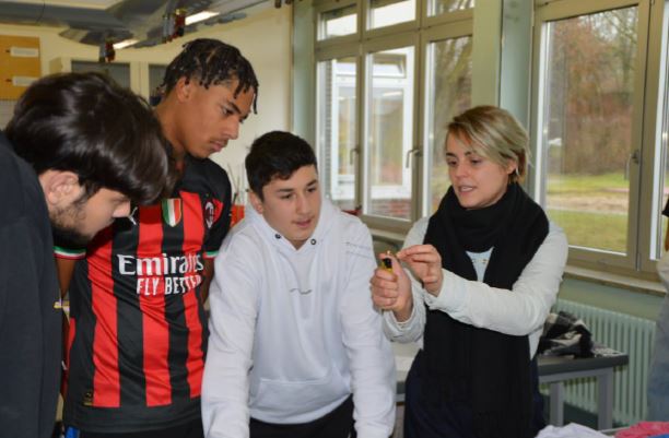 Später lernte die Klasse das futuristische Konzept des Projekts The Line kennen, das eine Stadt für neun Millionen Menschen wie auf einer Linie quer durch Saudi-Arabien bauen will, und erfuhr, dass daran solche technischen Berufe wie Konstruktionsmechaniker und Baustoffprüferinnen mitarbeiten. Besonders anschaulich gestaltete sich der Vortrag durch einfache Experimente und zahlreiche Exponate zum Anfassen und Ausprobieren. Coach Stefanie Godel freute sich vor allem über das große Interesse der Schulklassen: „Durch die lebhaften Vorträge mit vielen Diskussionen haben wir gemerkt, dass die Themen sehr gut ankamen.“ Und das nicht nur bei Teilnehmenden, die sich ohnehin für Technik begeistern. Wer etwa gut rechnen kann, denke häufig daran, eine kaufmännische Karriere einzuschlagen. Dabei habe man mit guten Mathe-Kenntnissen auch beste Voraussetzungen, um in IT- und Technikberufen erfolgreich durchzustarten, so Godel.