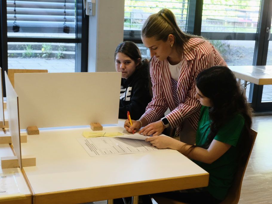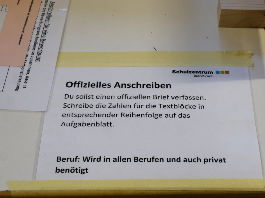 Beim Berufsbild von Bankkaufleuten mussten die Schüler ein Überweisungsformular ausfüllen, eine Übung, die später – wie etwa auch ein offizielles Anschreiben zu verfassen – für jeden zum Alltag gehören wird. Mit Hilfe eines Laufzettels reflektierten die Schüler ihre Fähigkeiten, mussten überlegen, welche Stärken sie für die jeweilige Aufgabe benötigten.
