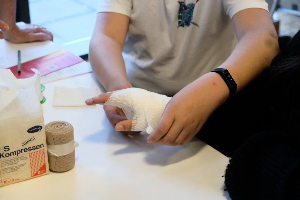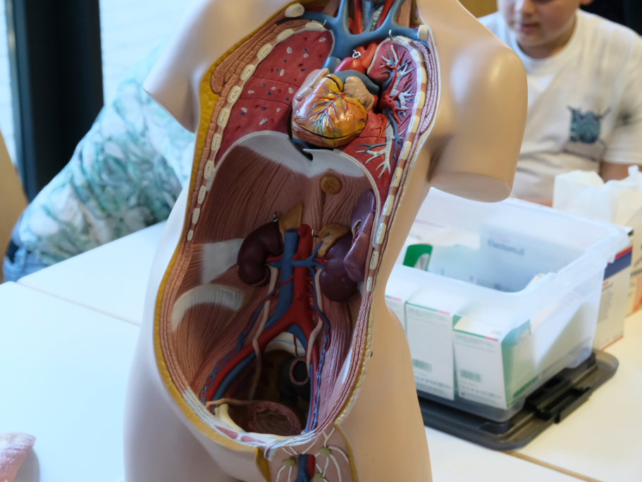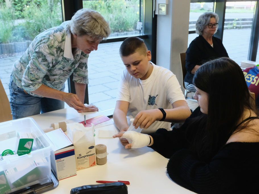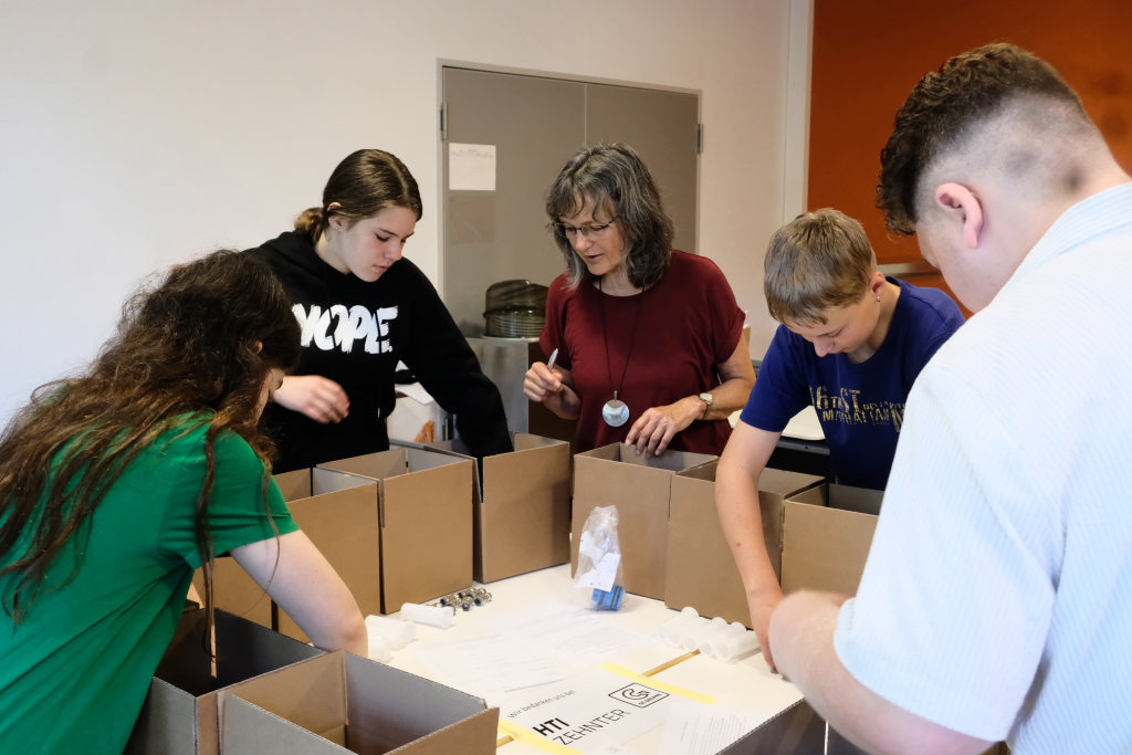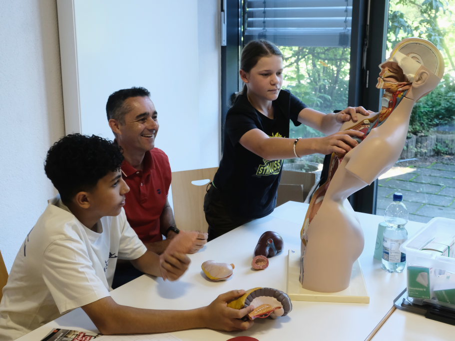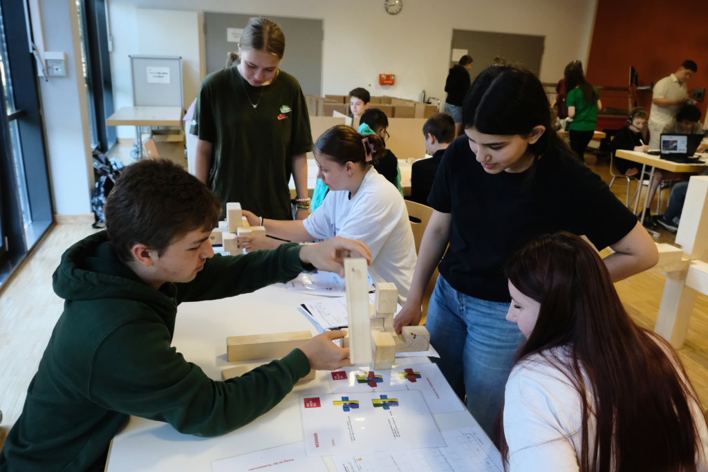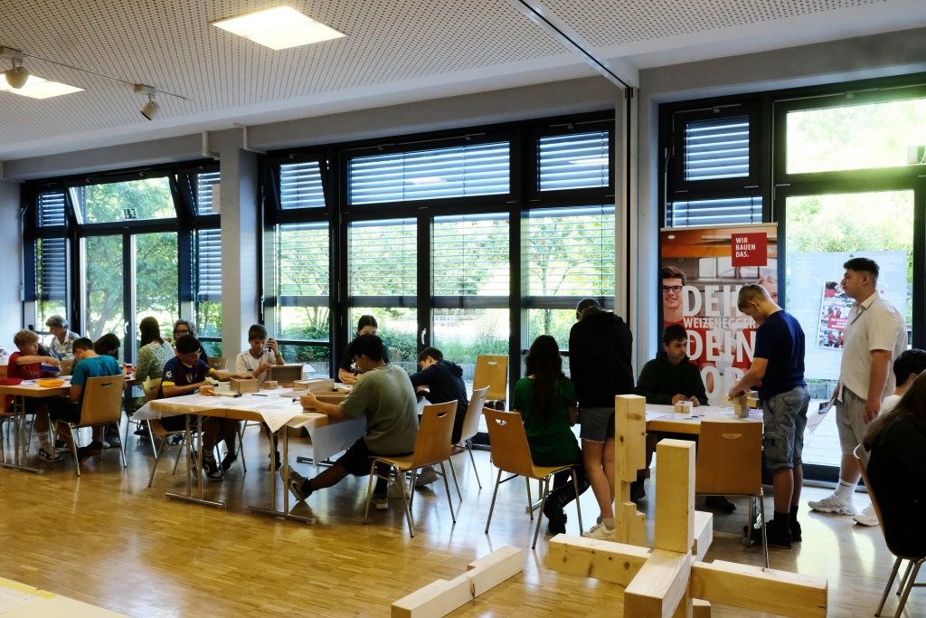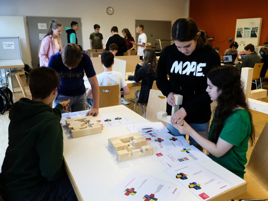 Eine gute Logik- und Vorstellungskraftschulung ist das Zusammenstecken eines Holz-Modells – wie es bei den Zimmerleuten gefordert ist. Anspruchsvoll war auch die Aufgabe, als Lagerist einen Auftrag aus mehreren Einzelteilen zusammenstellen. Für den Pflegeberuf stand die Befüllung einer Medikamentenbox mit verschiedenen Tabletten und Heilmitteln an. Beim Platz des IfP bekamen die Schüler im Wortsinne Einblicke in die menschliche Anatomie.