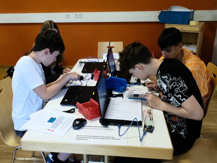 Für die meisten Schüler am interessantesten war die Arbeit mit dem Computer, an dem sie nach Anweisung eine Schaltung programmieren durften, um sich auf den Job des Fachinformatiker vorzubereiten. Bürokommunikation wurde ebenfalls anhand von Laptops geübt. Bei der Metallverarbeitung durften sie einen Schlüsselanhänger aus Blech schneiden, beim Holzmechanikerberuf galt es, eine Holzbox nach Anleitung zusammenzubauen, die von den Schülern dann mit nach Hause genommen werden durften.