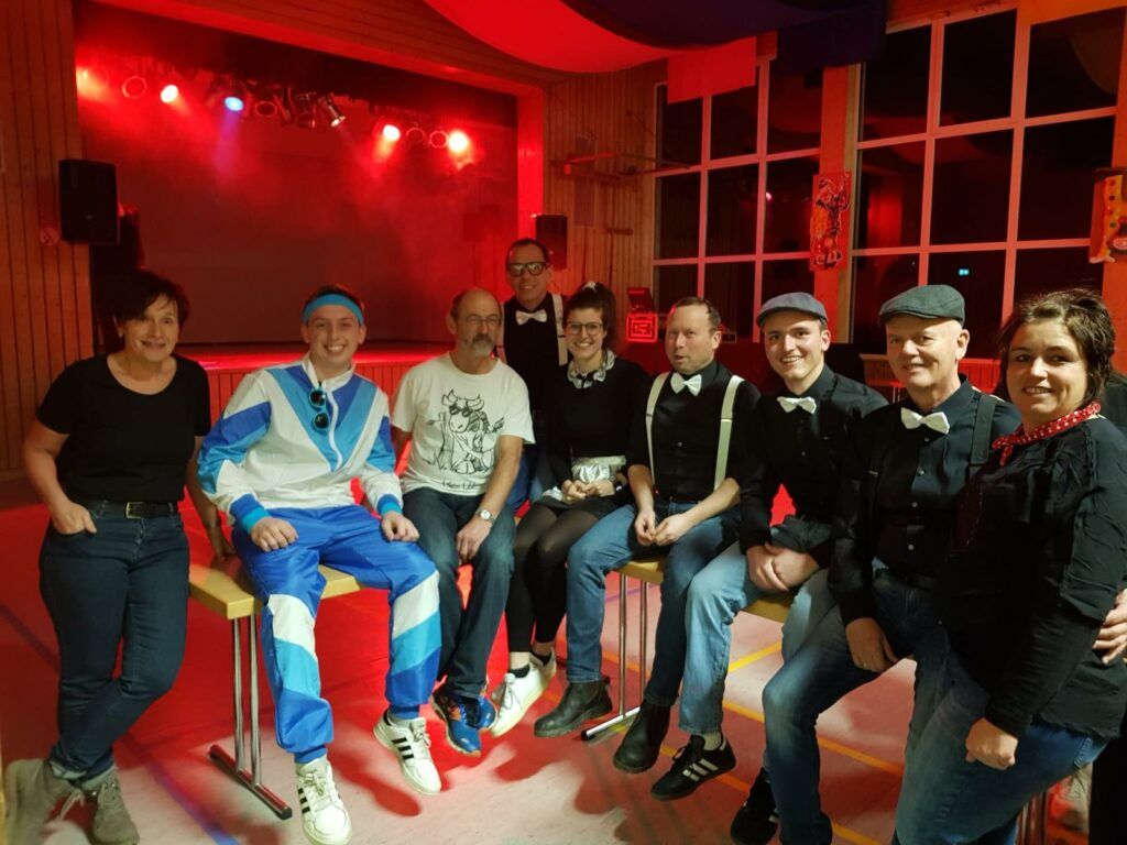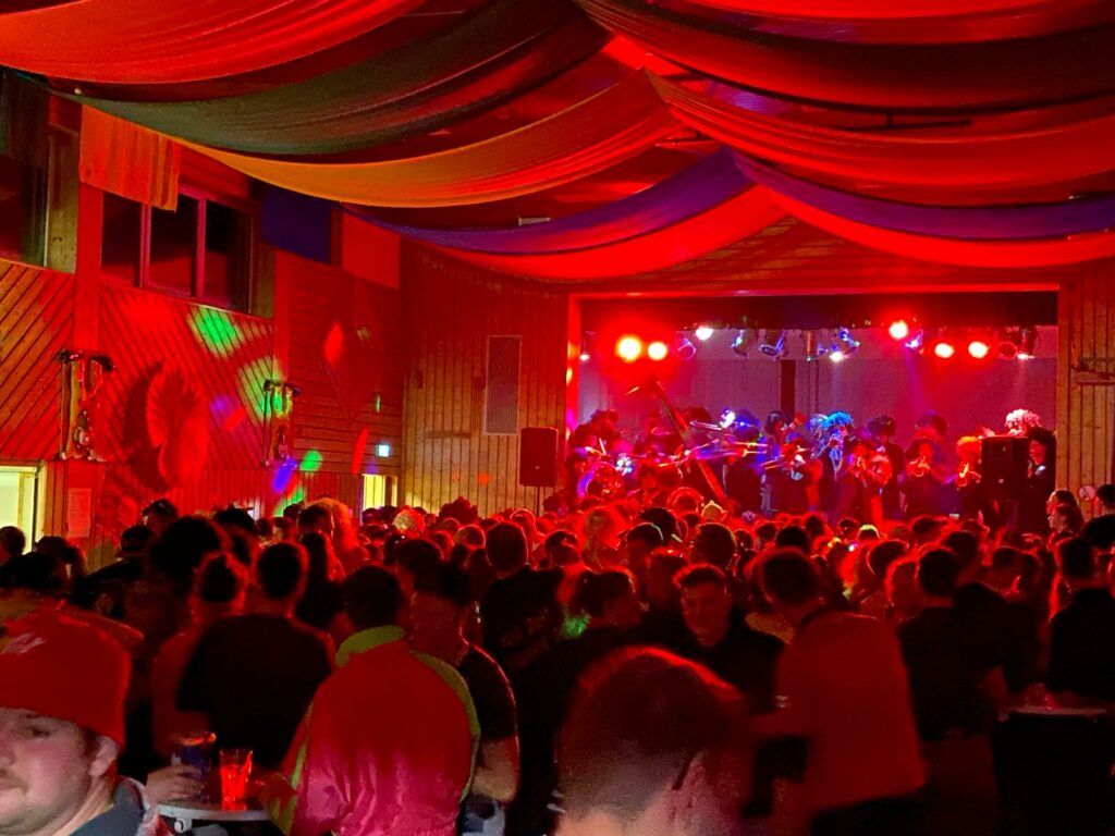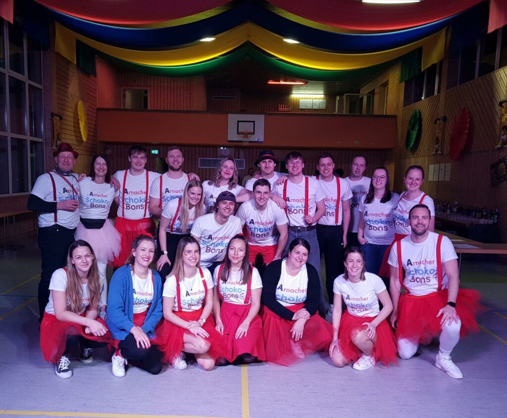Die Mädels der SV-Arnach-Dance-Group unter der Leitung von Katharina Zapf begeisterten das Publikum mit einer sensationellen Choreografie. Musikalisch heizte die „Vollgasbänd“ aus Seibranz in der Halle richtig ein. Zum Abschluss legte DJ Markus bis spät in die Nacht neue und alte Charthits auf und ließ die Stimmen und Beine der Jecken müde werden.