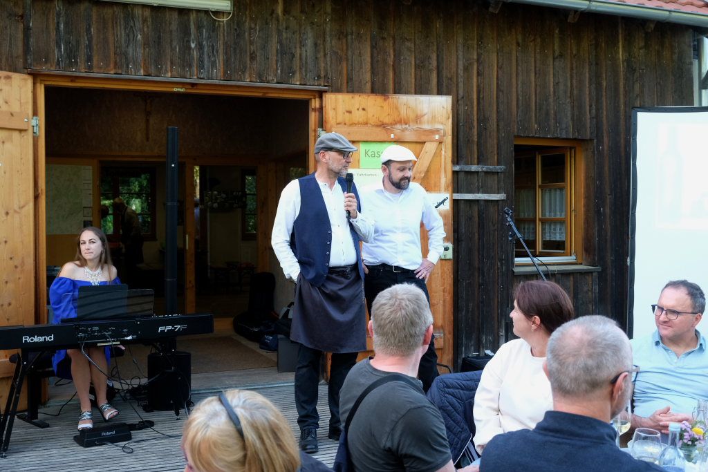 Ein besonderes Lob aus berufenem Mund erhielten kochenden Mannsbilder auch noch: Die Atmosphäre und das Essen der Veranstaltung, die musikalisch vom Duo Valeria (Piano) und Alex (Kontrabass) aus Bad Waldsee begleitet wurde, fand David Bösl, der schon einige Veranstaltungen der Reihe organisiert hatte, „einfach einmalig“.