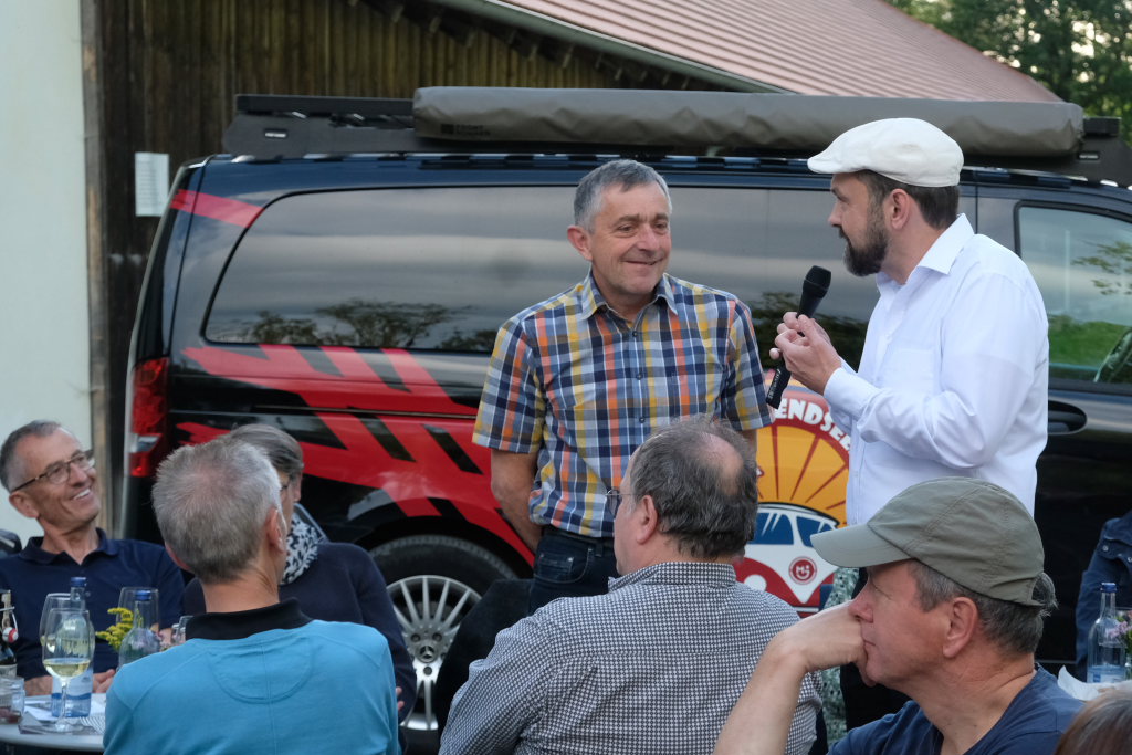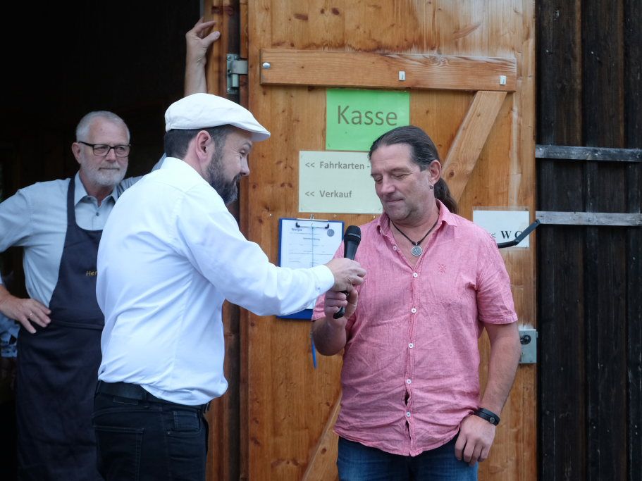 David Bösl (mit Mikrofon) beim Interview mit Karl-August Mohr.