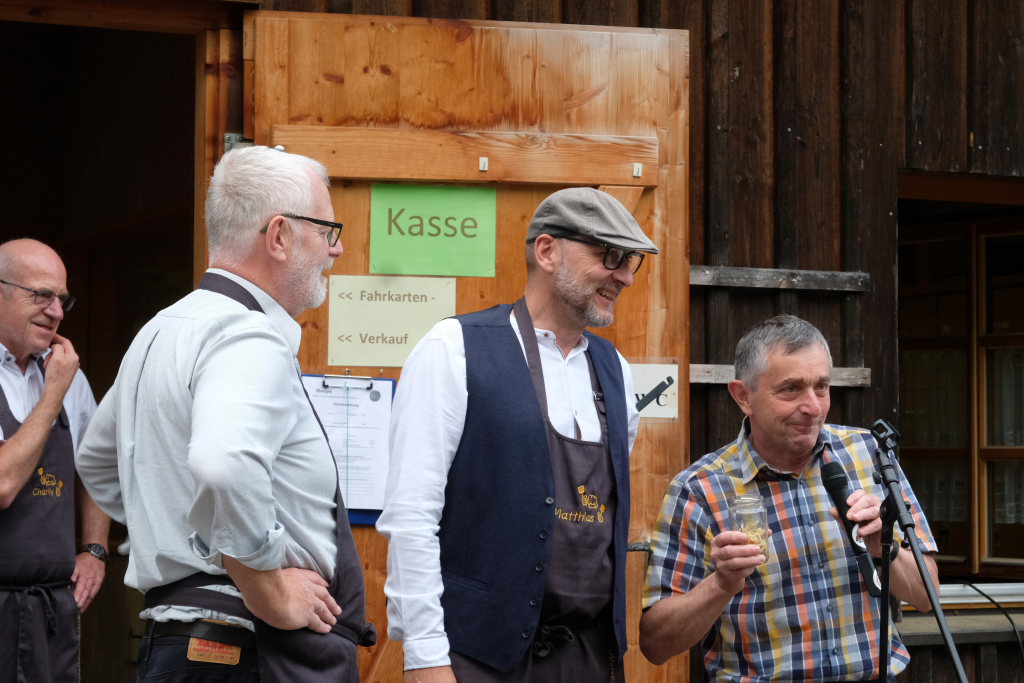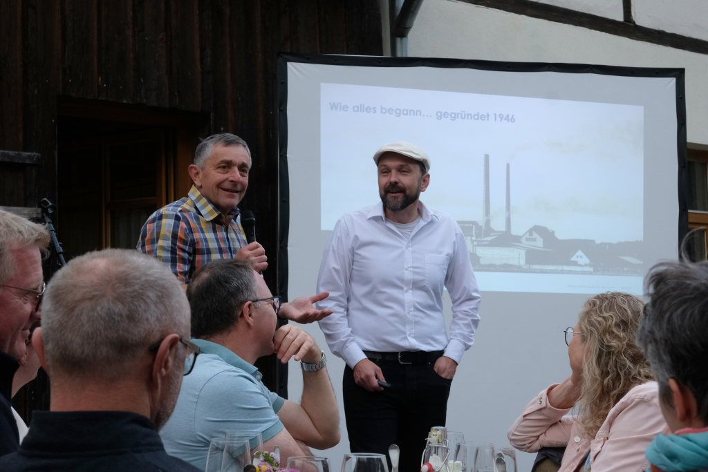 Die Idee dazu, schaute Mohr auf die Anfänge zurück, war 1946 in Ulm entstanden; nach dem Krieg hatte Bad Wurzach eines in Hülle und Fülle: Torf als Energieträger, um die dringend benötigten Konservengläser herzustellen. Die Fabrik wurde gebaut, aber das mit dem Torf hatte nicht so recht funktioniert. Denn die Glasschmelze braucht konstant hohe Temperaturen und Torf viel zu lange, um zu trocknen, deswegen wurde sehr bald auf Öl umgestellt, berichtete Mohr zwischen den ersten beiden Gängen.