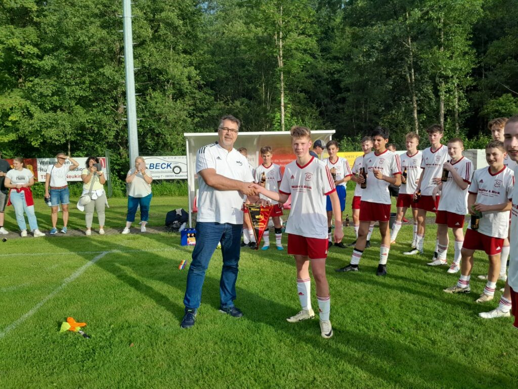 Ein herzliches Dankeschön gilt den mitgereisten zahlreichen Fans, die nach dem Spiel mit der Mannschaft die Wimpel-Übergabe durch Staffelleiter Robert Kloß feierten. Nicht nur während des Spiels haben sie die Jungs unterstützt, auch waren ihre Autos voll mit Getränken geladen, die nach dem Spiel gerne angenommen wurden.