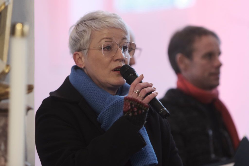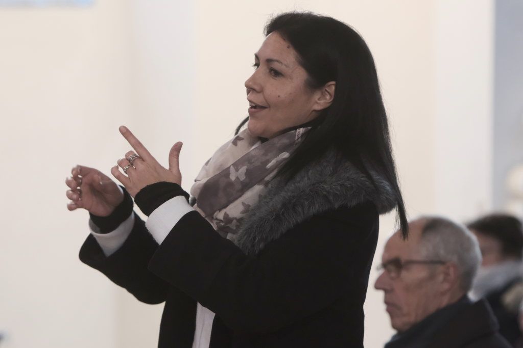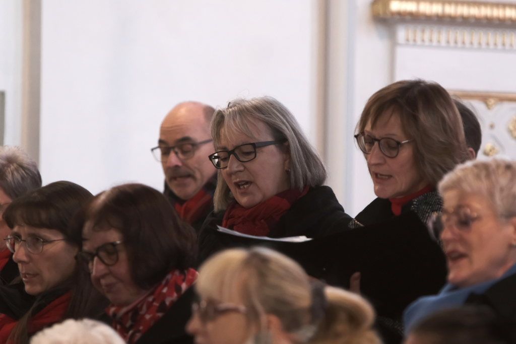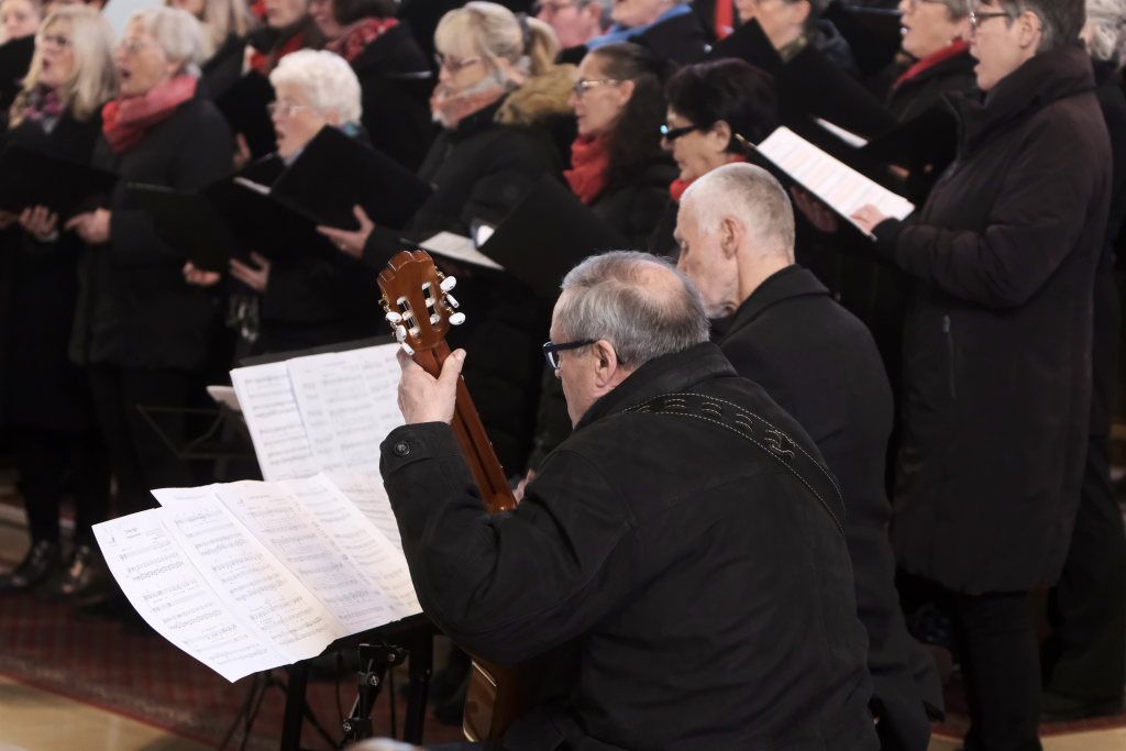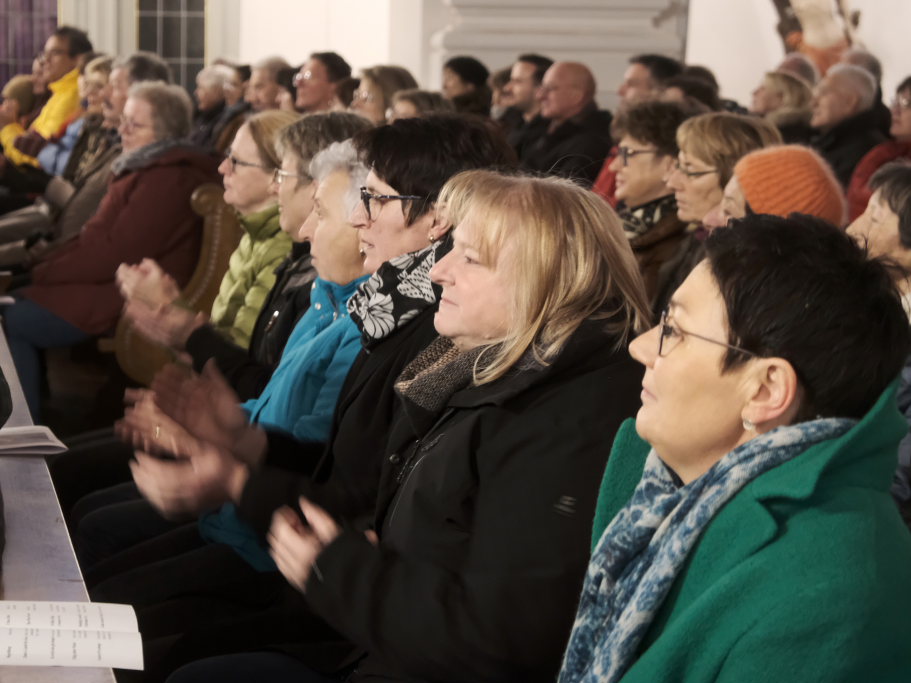 Nach der Begrüßung durch Vorstandsmitglied Bettina Sgier sang der am Klavier von Robert Häusle und Rainer Uhl an der Gitarre begleitete gemischte Chor das berührende Chorlied „Zünd a Liacht für di an“, das der österreichische Komponist Lorenz Maierhofer 2018 für einen schwer erkrankten Freund schrieb. Das „Goldkehlchen“ Corinna Miller (O-Ton Bettina Sgier) sorgte als Solistin für einen ersten Höhepunkt des Konzertes.
