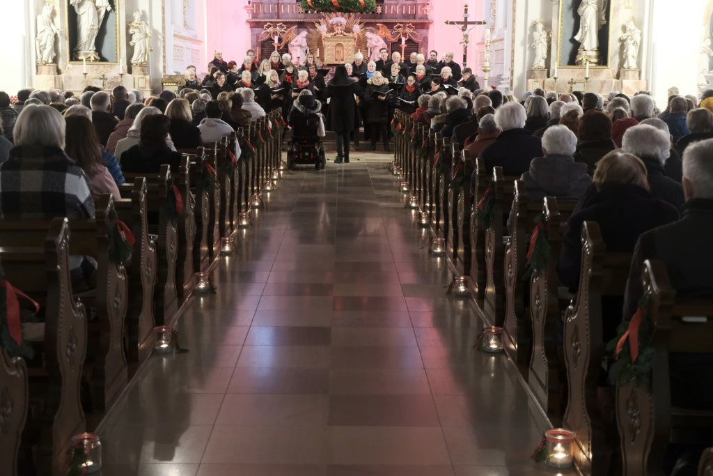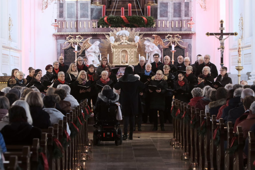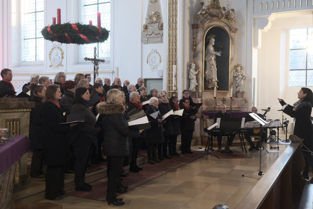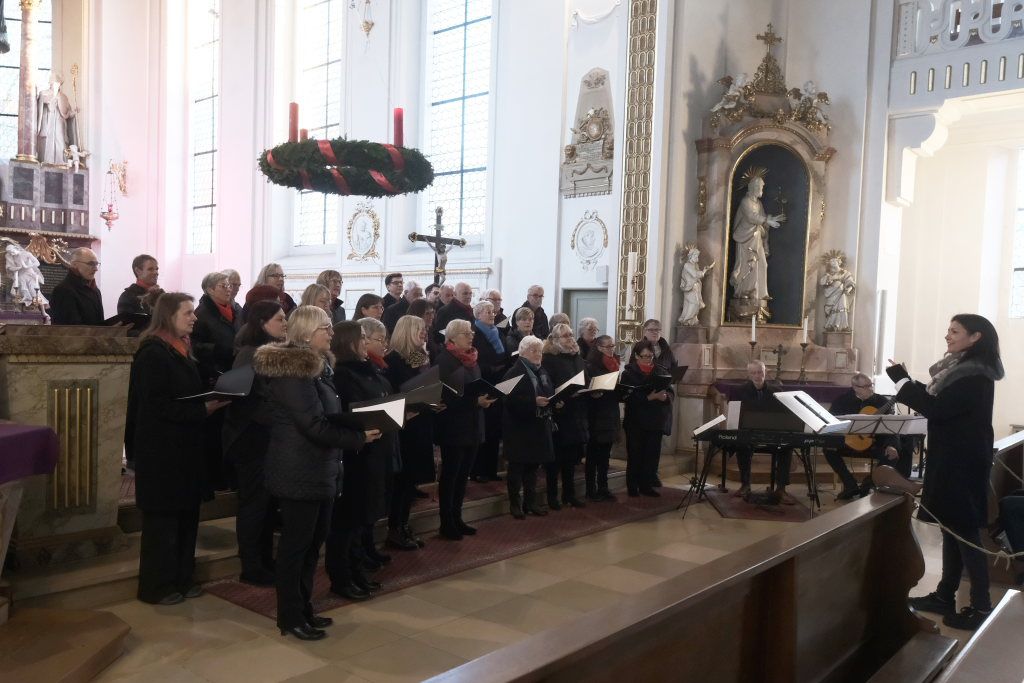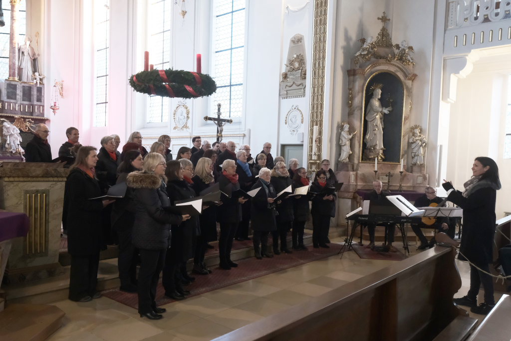 Mit dem „Andachtsjodler“ oder auch „Mettenjodler“, einem Weihnachtslied aus Südtirol, im Arrangement der neuen Dirigentin Katja Ehrat, eröffneten die Sängerinnen und Sänger des Liederkranzes Chorioso das Konzert in der sehr gut besuchten Stadtpfarrkirche St. Verena, wo sie mit ihrem Adventskonzert nach der „eiskalten“ Premiere im Vorjahr in Anwesenheit des Hausherren Pfarrer Stefan Maier zum zweiten Mal konzertierten.