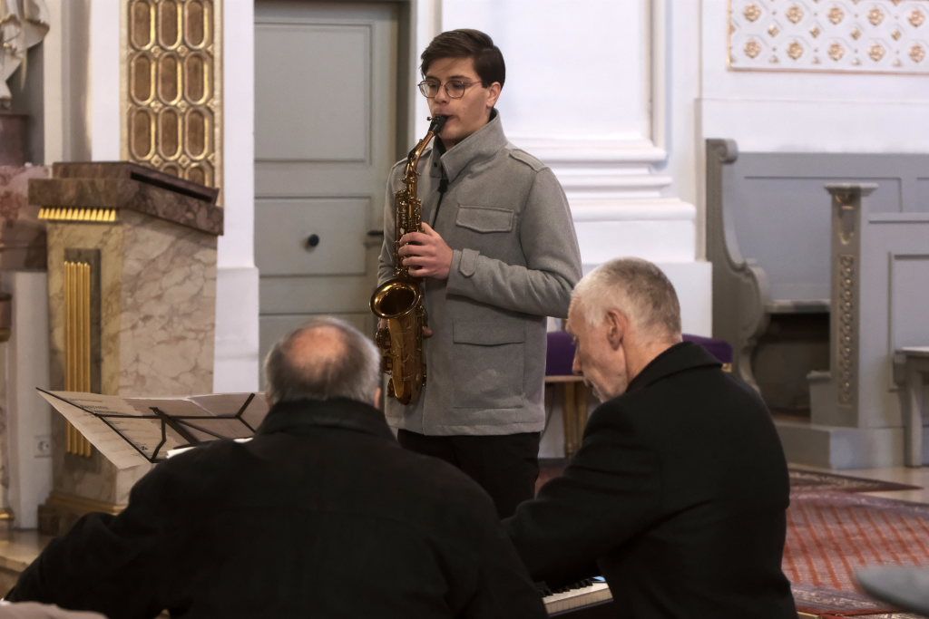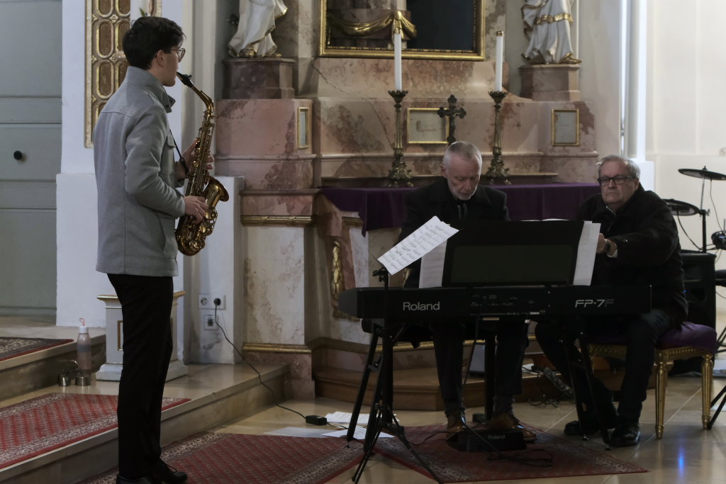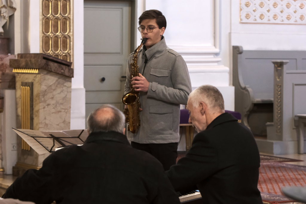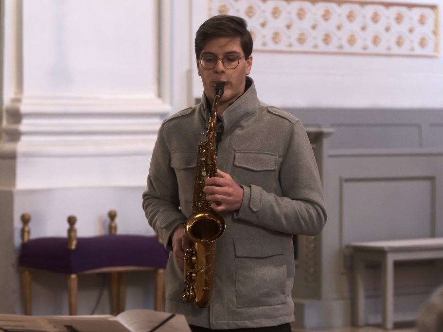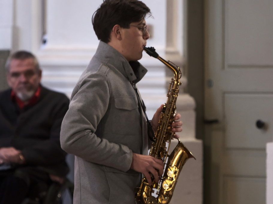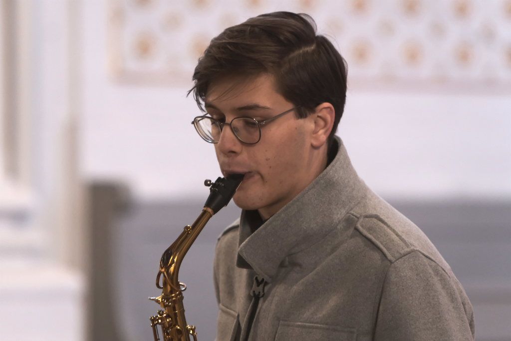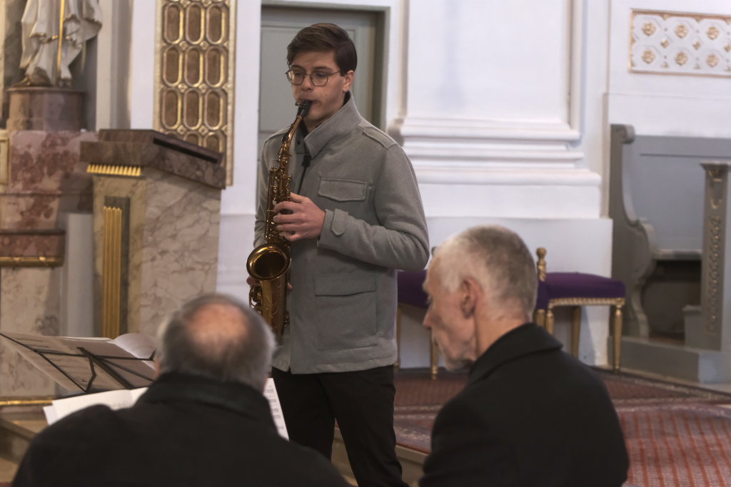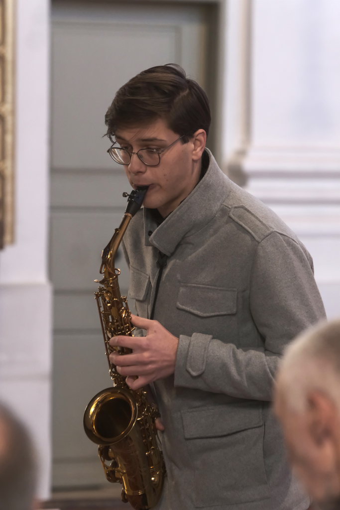 Mit dem alpenländischen Weihnachtslied „Es wird scho glei dumpa“ und dem Lied „Eisig kalter Winter“ von Gustav Holst blieben die Musiker auf der klassischen Chor-Musik-Linie, um sich dann nach der berühmten Arie „Lascia chío pianga“ im Stil einer Sarabande aus der Oper Rinaldo von Georg Friedrich Händel eine kleine Pause zu gönnen, denn mit dem jungen Saxophonisten Tim Guler wartete bereits ein weiterer Konzert-Höhepunkt auf die Konzertbesucher.